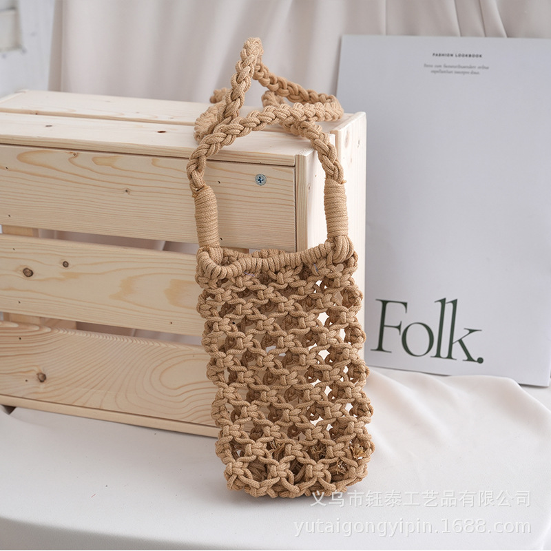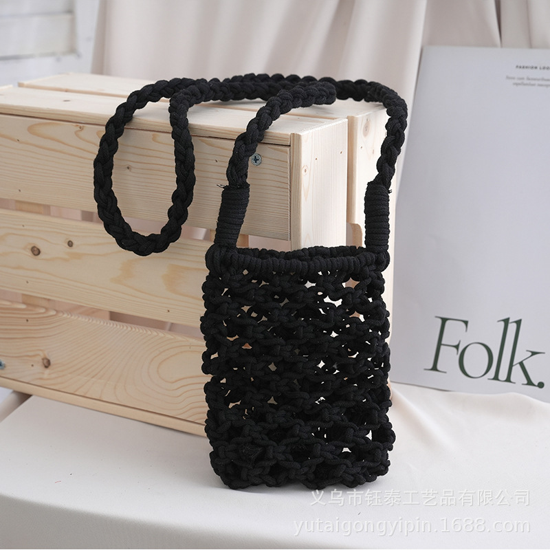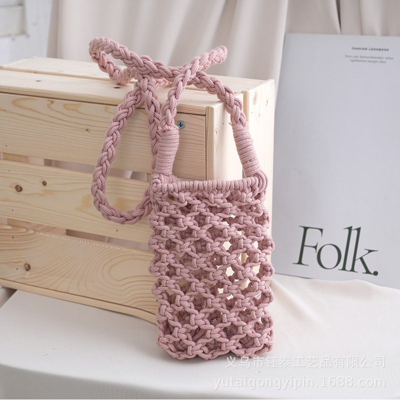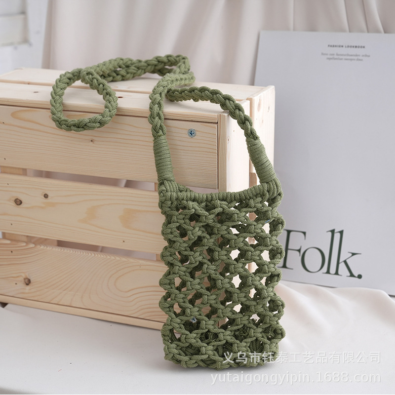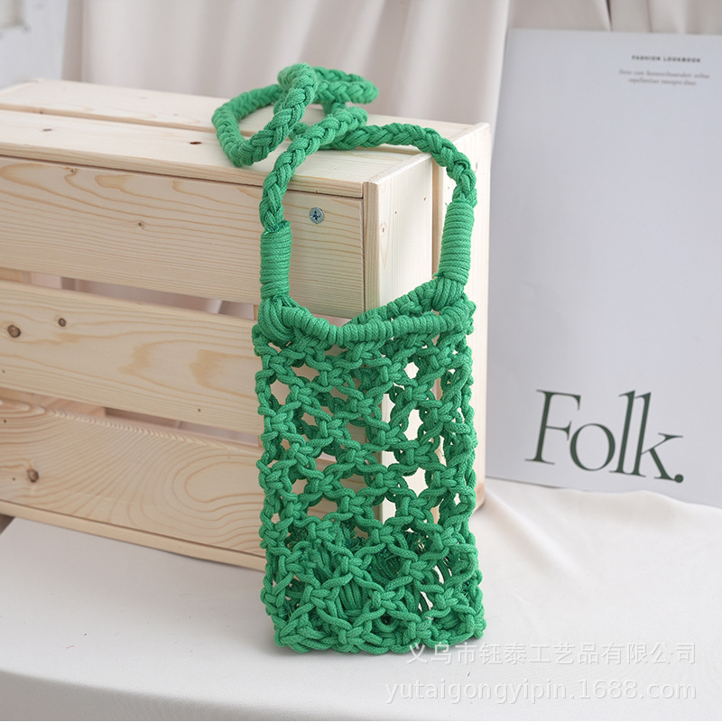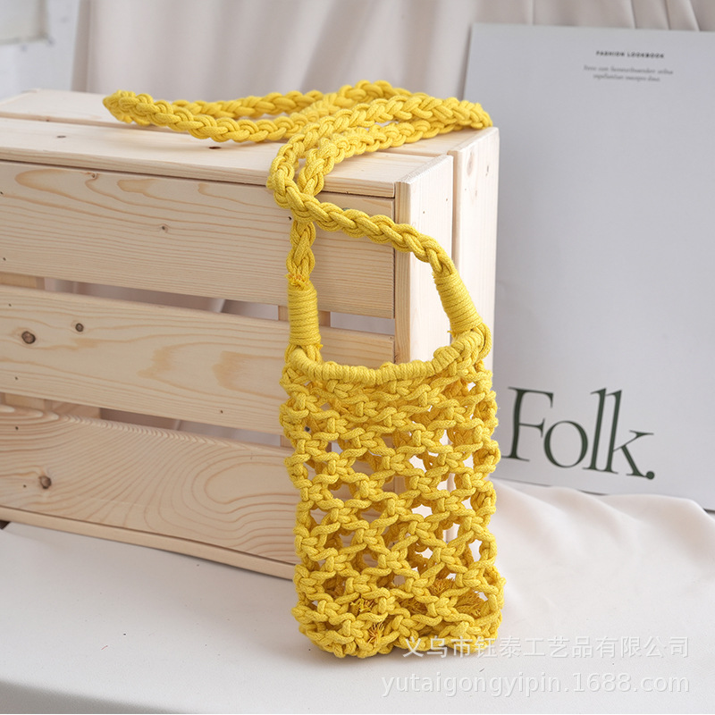 컬러 크로스 바디 코튼 라인 휴대 전화 가방 중공 수제 가방 짠 가방 휴대 전화 가방 작은 가방 귀여운 여름 가방 여성 가방