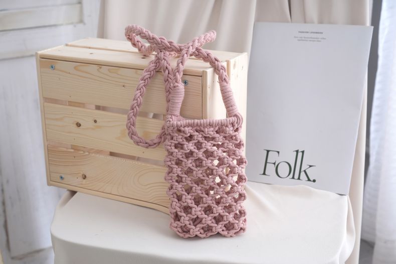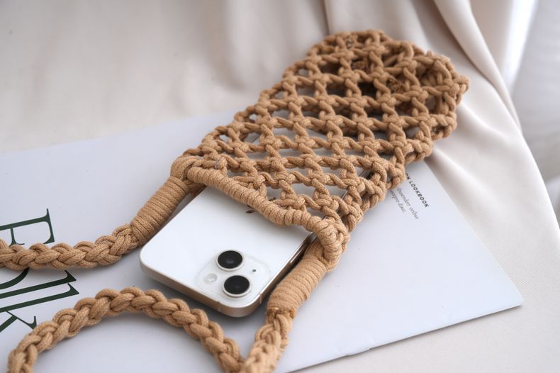 컬러 크로스 바디 코튼 라인 휴대 전화 가방 중공 수제 가방 짠 가방 휴대 전화 가방 작은 가방 귀여운 여름 가방 여성 가방스토어 가기