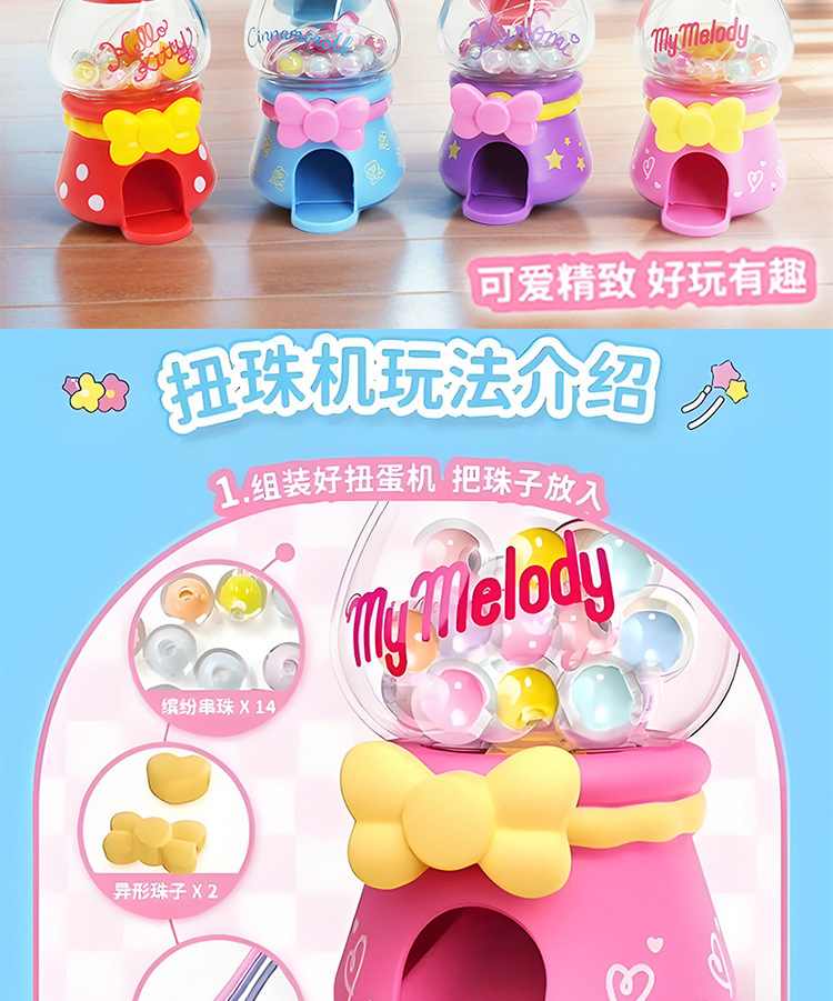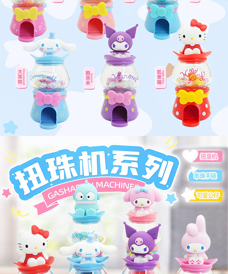 산리오 패밀리 트위스트 비즈 가샤폰 머신 블라인드 박스 쿠로미 시나몬 개 멜로디 헬로 키티 소녀 비즈 장난감스토어 가기