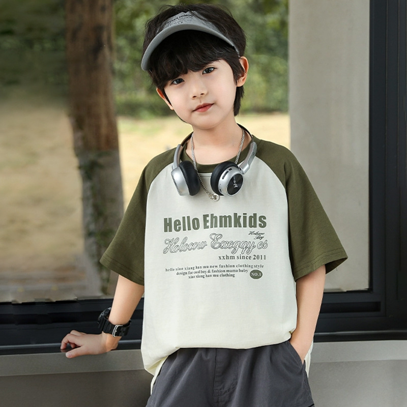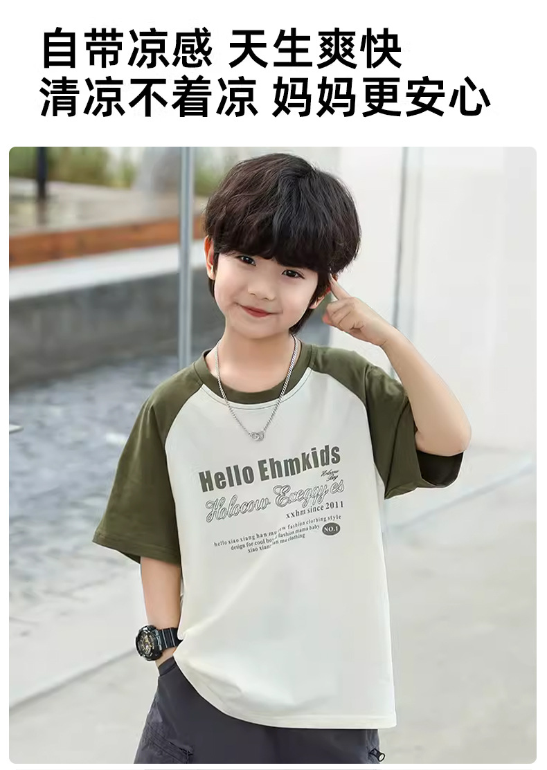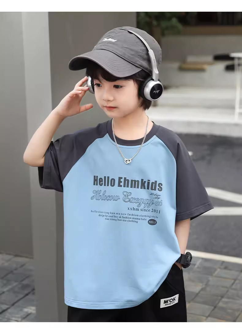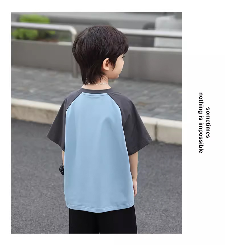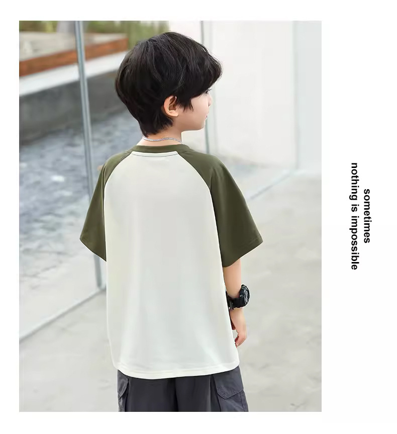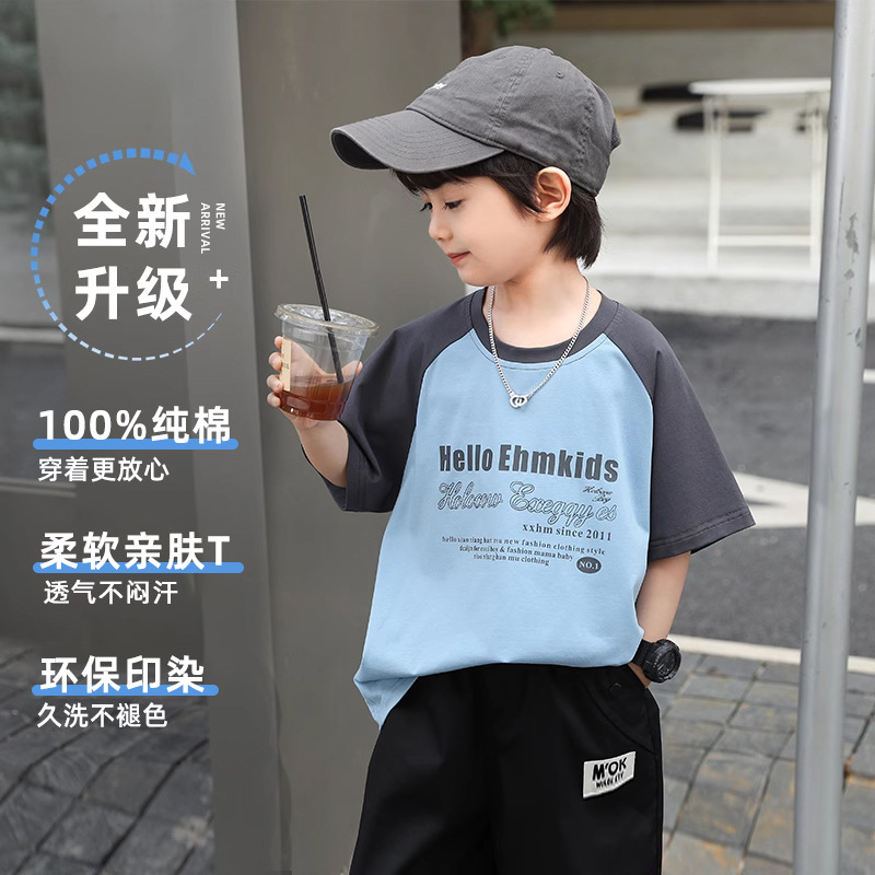 남아 반팔 배색 티셔츠 여름 트렌디 티셔츠 큰아동용 반팔 상의 2026년 신상 아동복 베이스 티셔츠