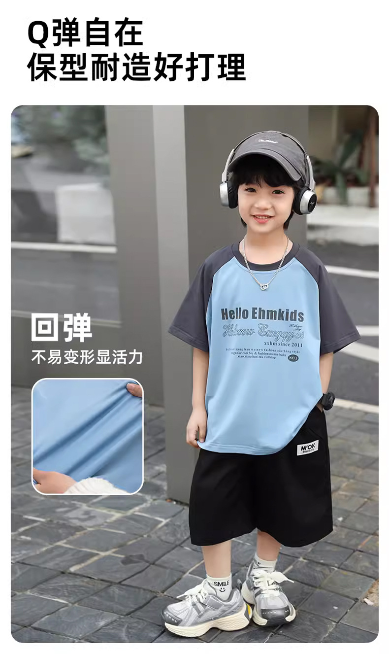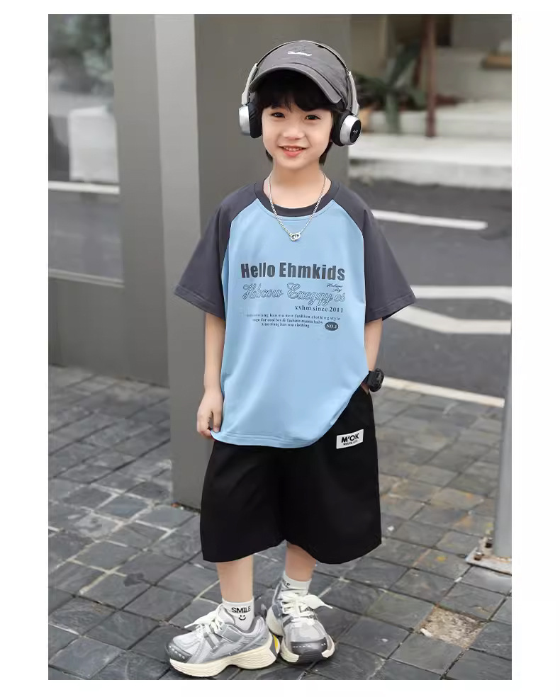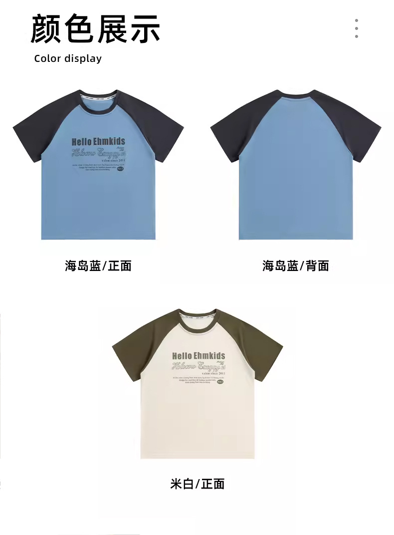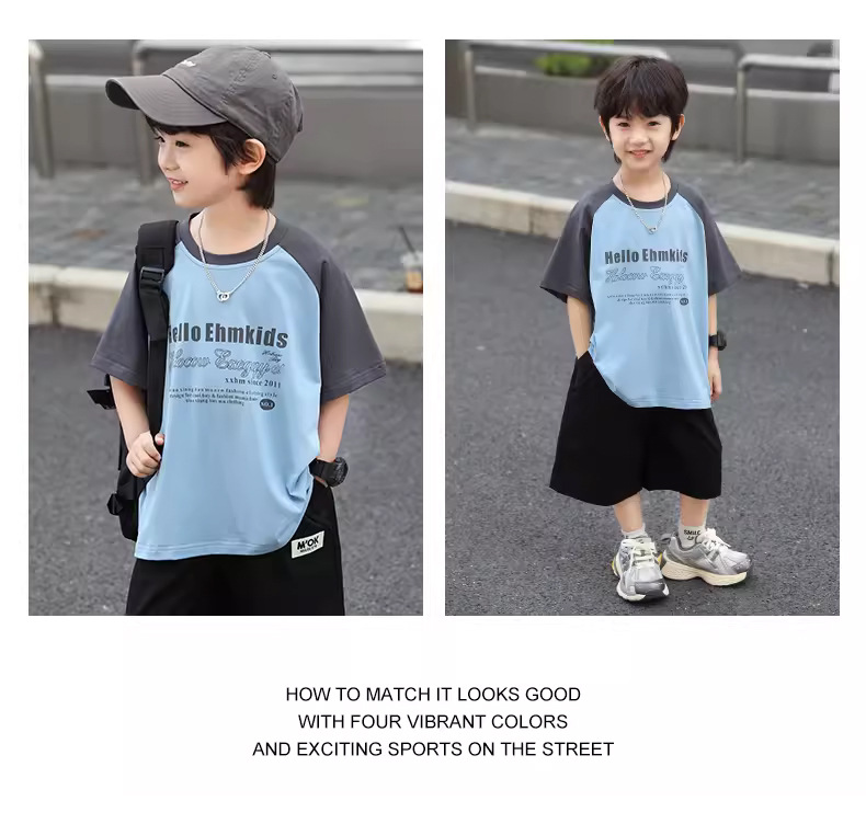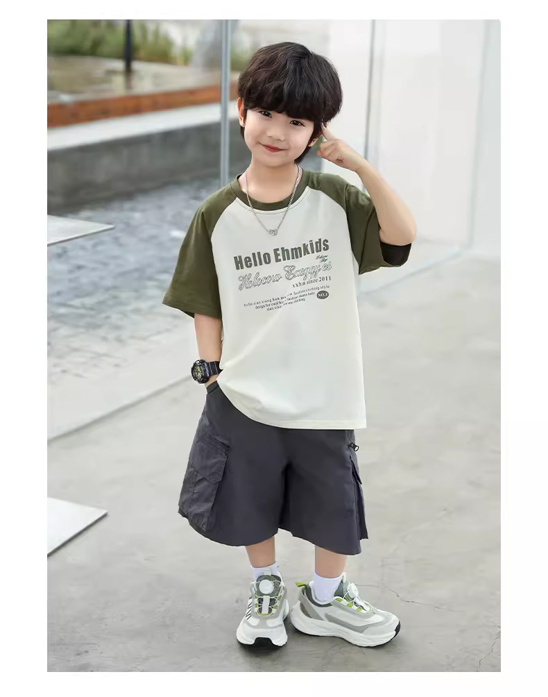 남아 반팔 배색 티셔츠 여름 트렌디 티셔츠 큰아동용 반팔 상의 2026년 신상 아동복 베이스 티셔츠