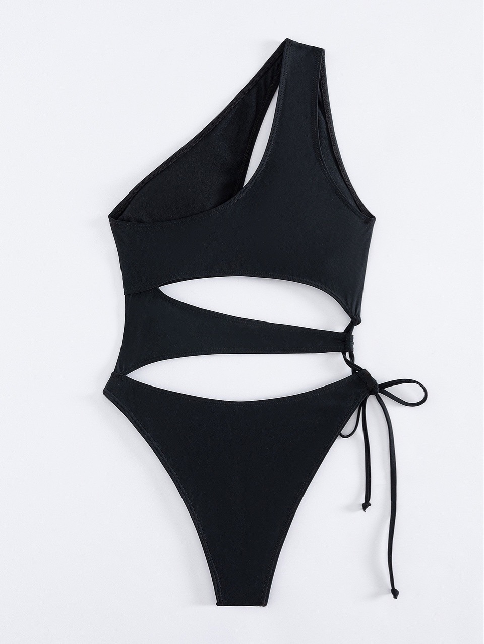 유럽과 미국의 국경 간 새로운 여성 솔리드 컬러 레이스 업 원피스 수영복 섹시한 원 숄더 핫 소녀 중공 해변 휴가 수영복스토어 가기