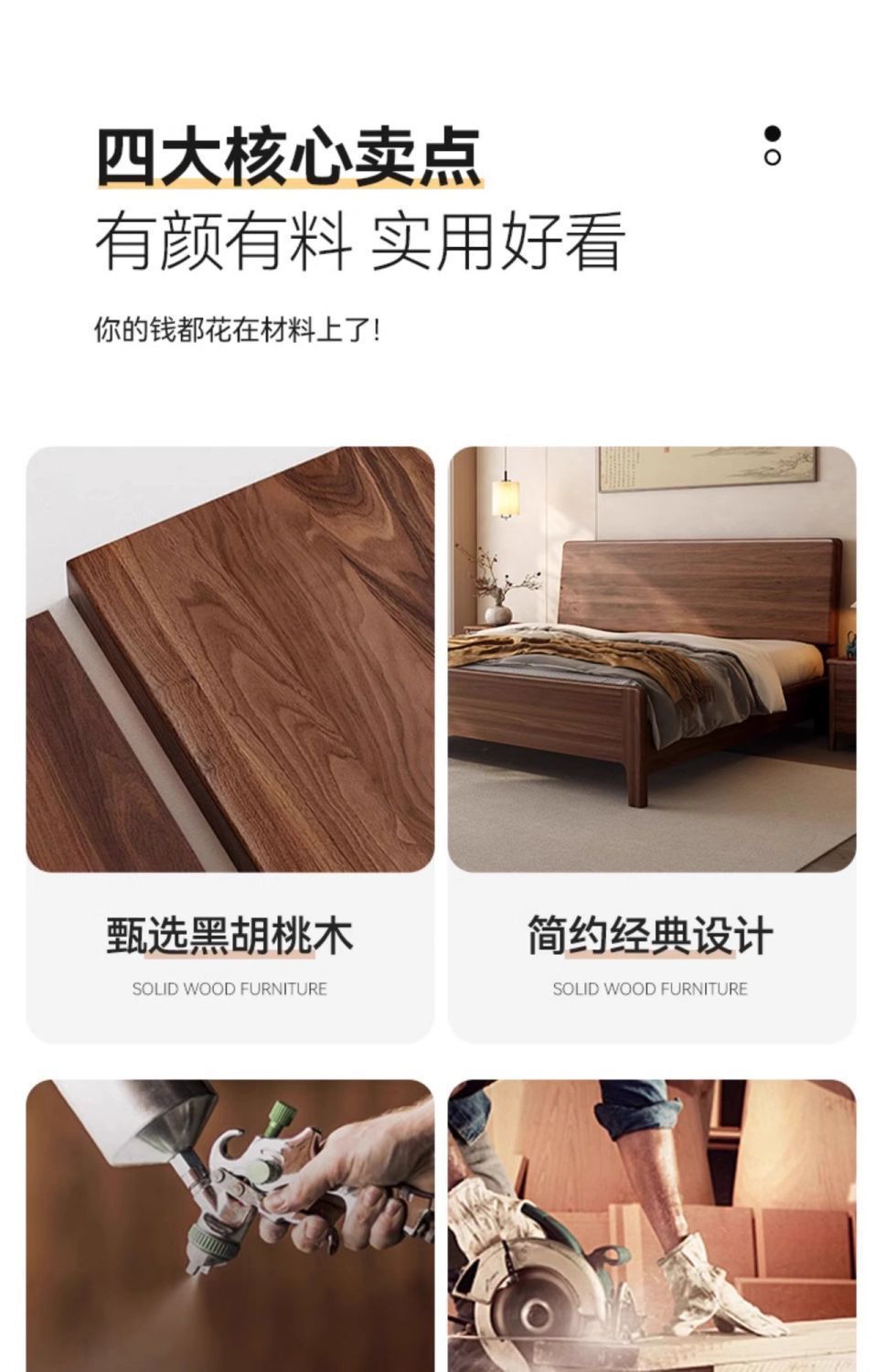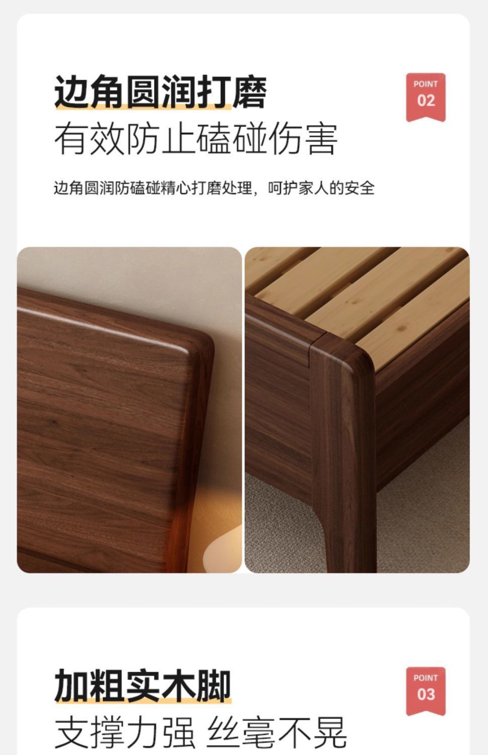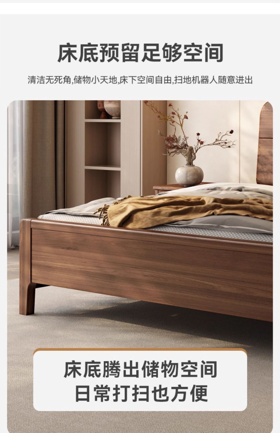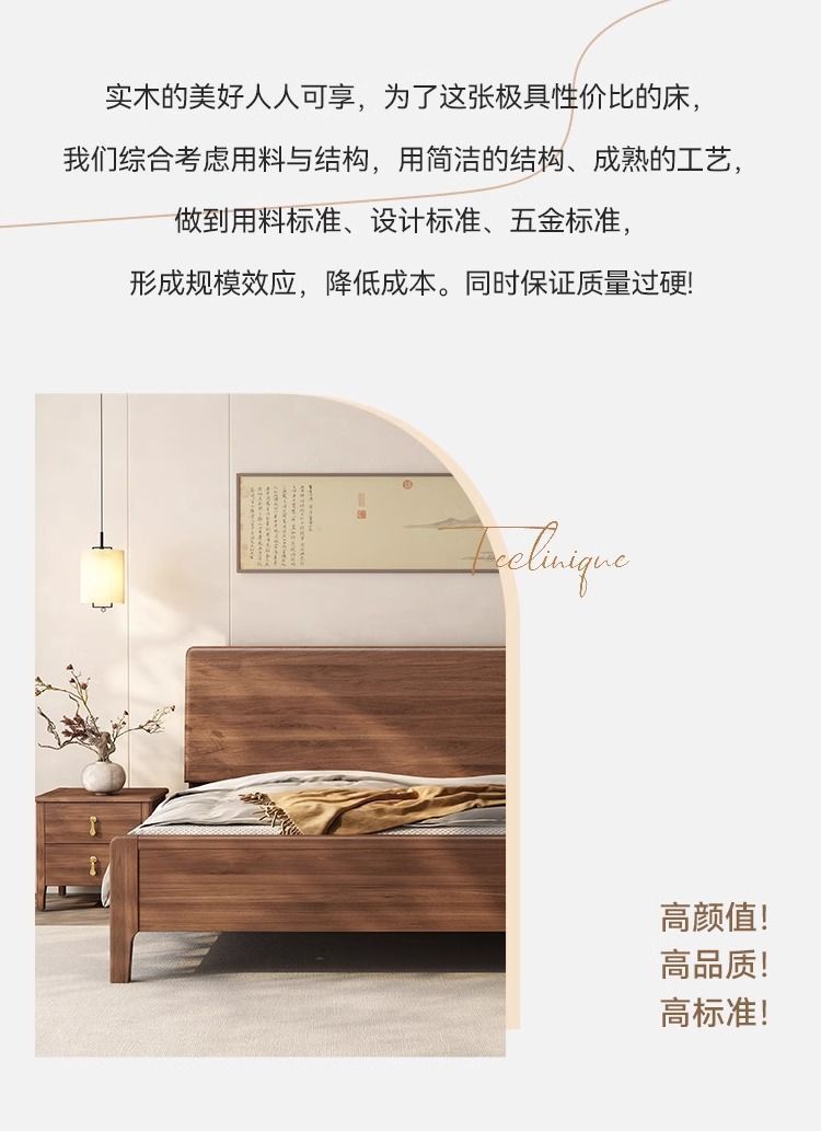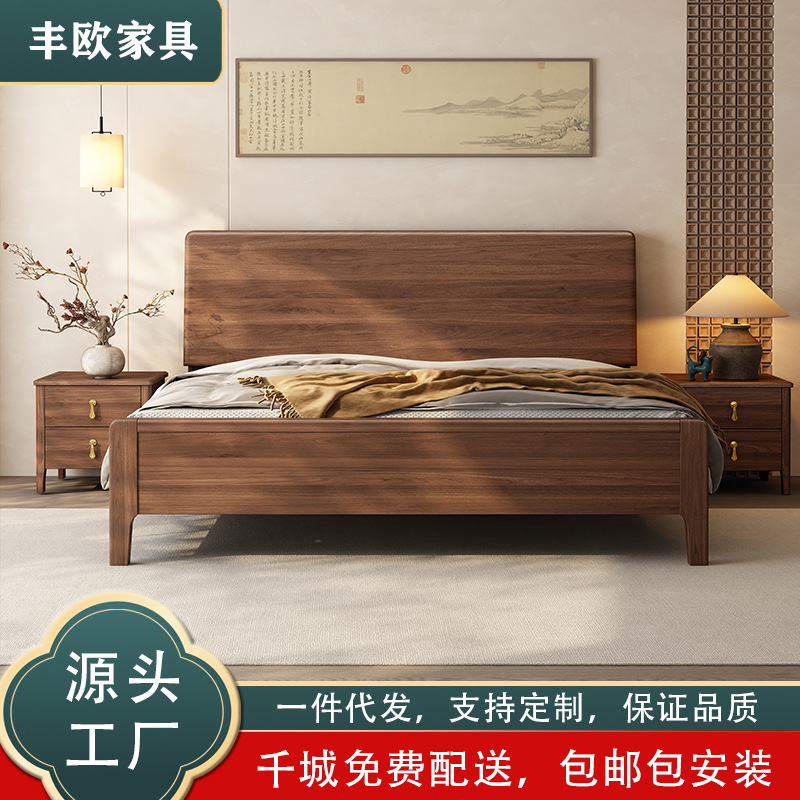 호두나무 원목 침대, 북유럽 스타일, 모던 심플, 가정용 소형 아파트용, 1.8m 더블 침대, 직배송스토어 가기