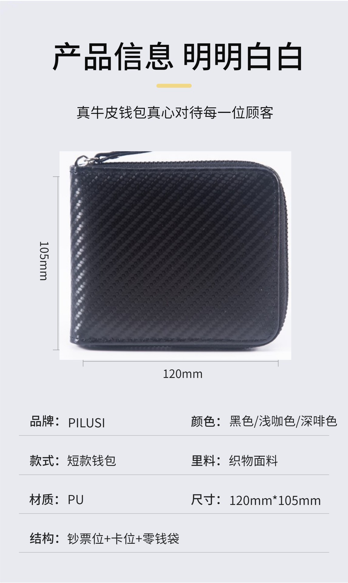 새로운 2025 남성용 지갑 짧은 탄소 섬유 패턴 비즈니스 대용량 지퍼 가방 카드 가방 체인 가방 국경 간 폭발스토어 가기