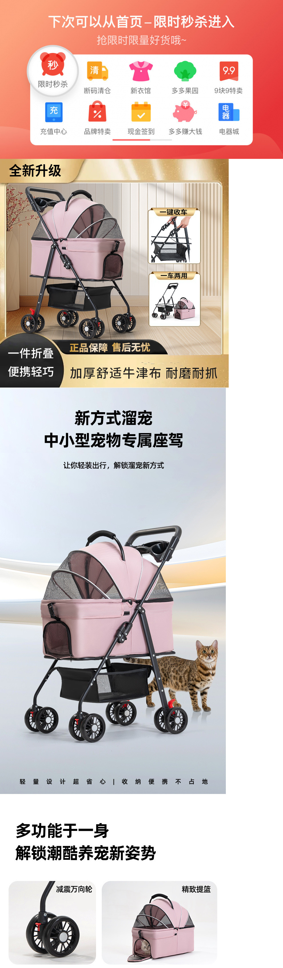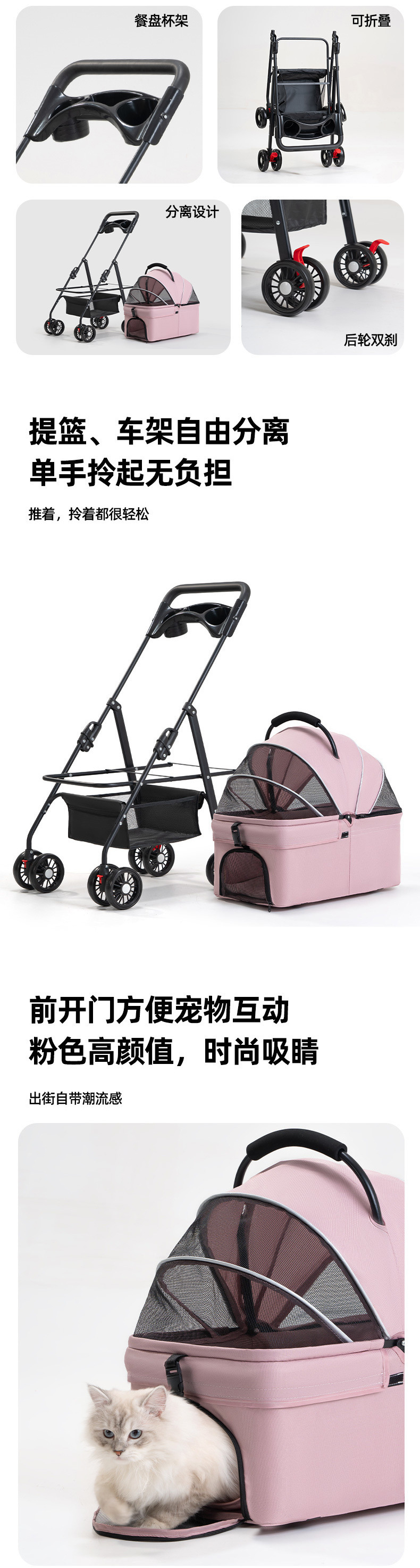 애완동물 유모차 개와 고양이 테디 포메라니안 접이식 분리형 유모차 외출용 소형 경량 애완동물 유모차스토어 가기