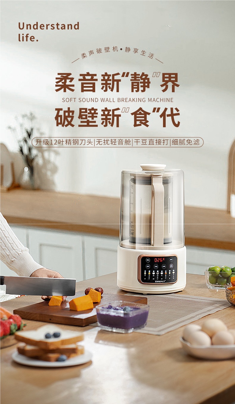 2025 벽파괴기 가정용 완전 자동 무음 새로운 다기능 무조리 두유 기계 건강 보조 식품 조리 기계