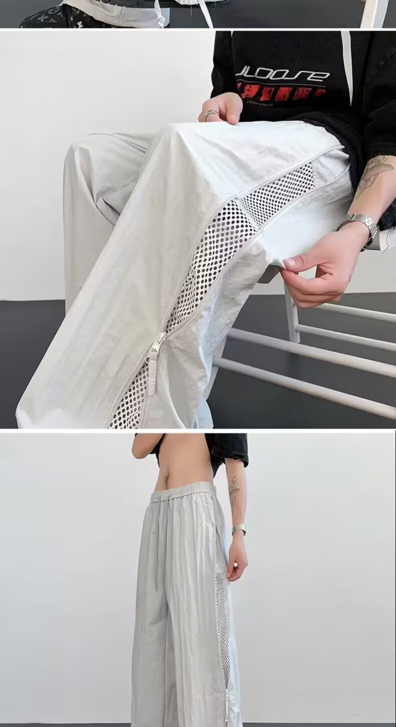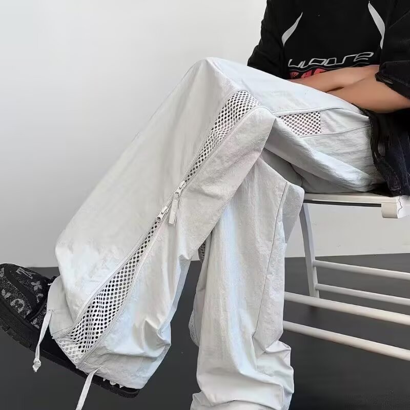 메쉬 통기성 속건성 낙하산 바지 남성 여름 유행 미국 야외 등산 바지 루즈 스트레이트 캐주얼 바지