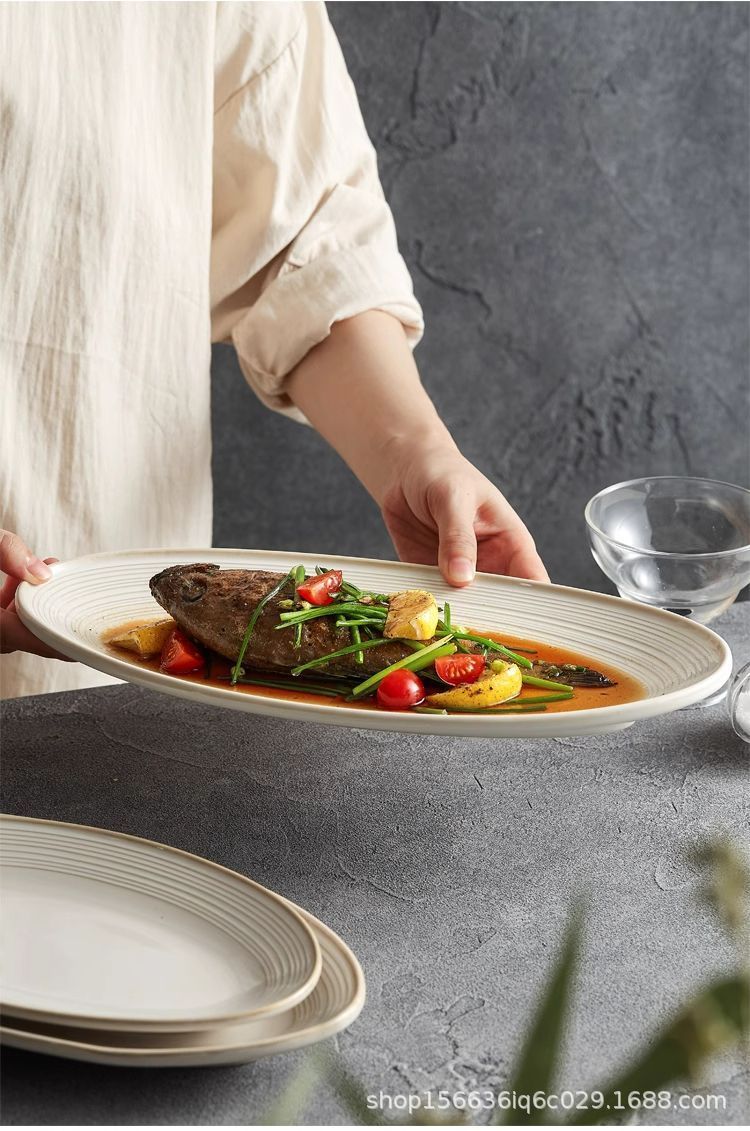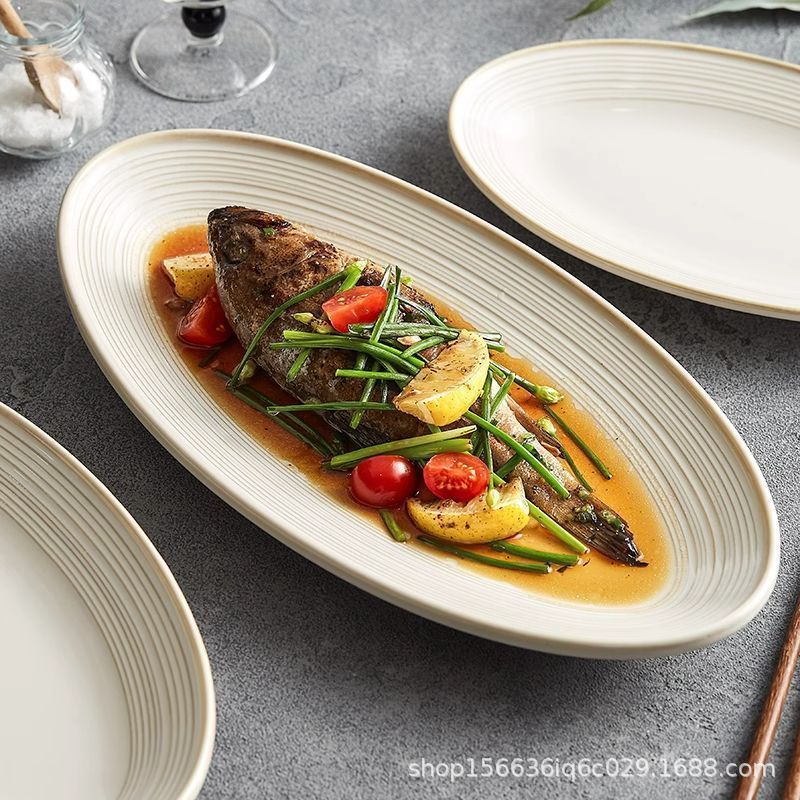 생선 찜 접시 가정용 라이트 럭셔리 2025 새로운 고급 호텔 멋진 세라믹 대형 깊은 생선 접시 인터넷 연예인 식기