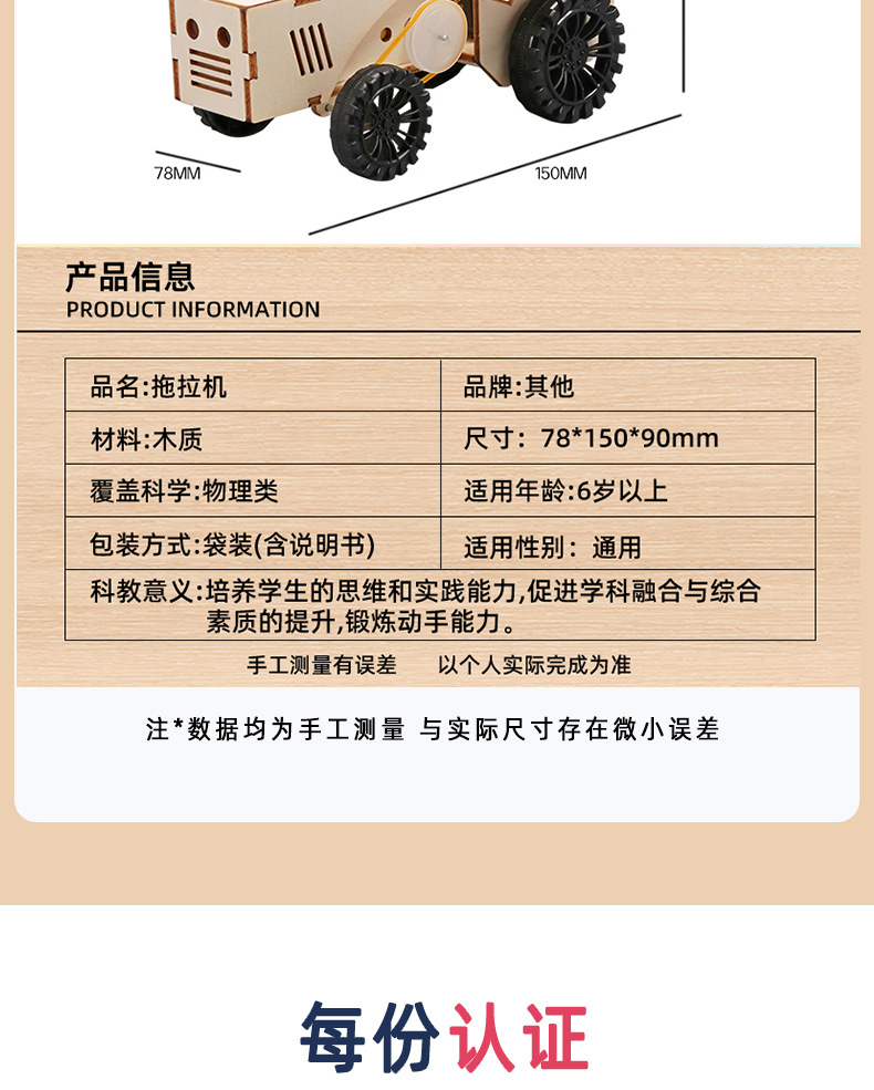 트랙터 과학 실험 생산 diy 기술 초등학생 실험 세트 수제 재료 조립 교육 장난감