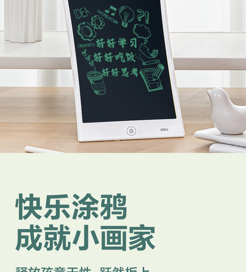 델리 YZ300 LCD 필기 패드 - 8.5inch (흰색) (개) 하이라이트 노트 및 원클릭 지우기