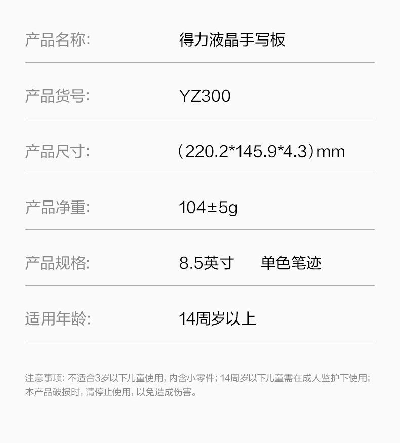 델리 YZ300 LCD 필기 패드 - 8.5inch (흰색) (개) 하이라이트 노트 및 원클릭 지우기스토어 가기