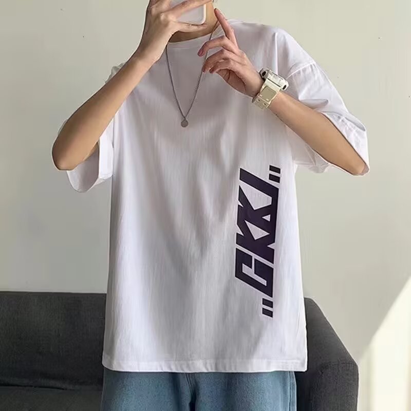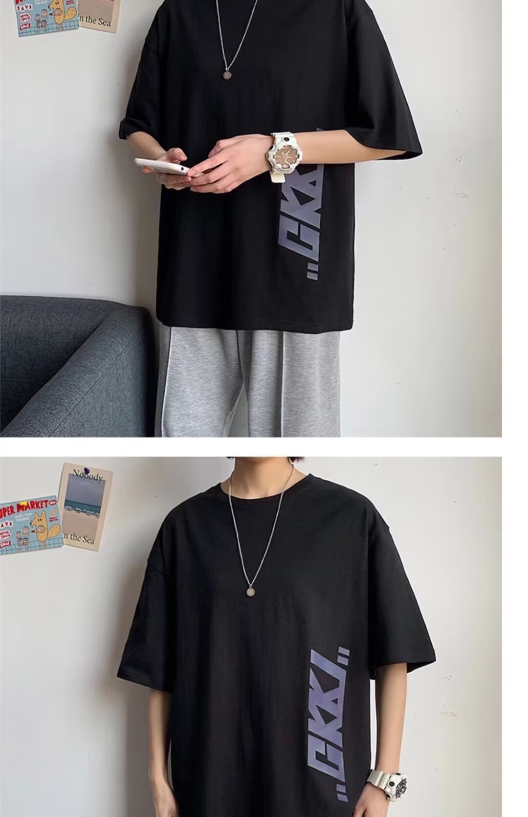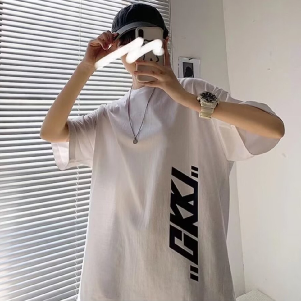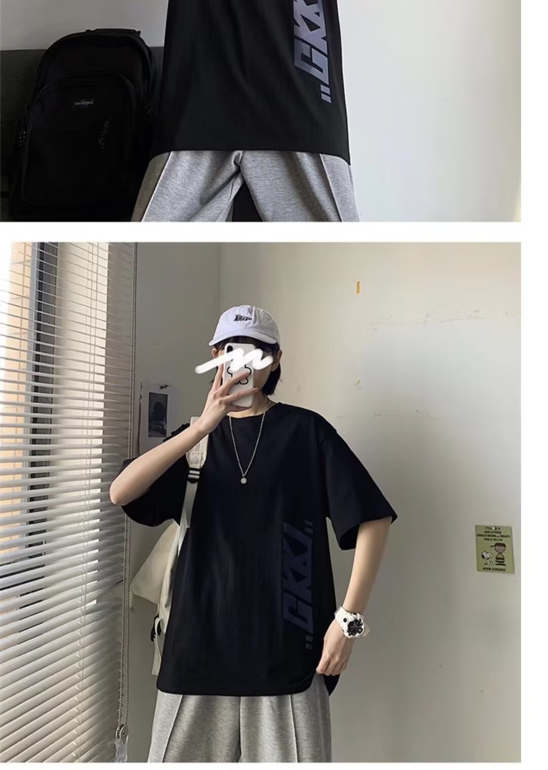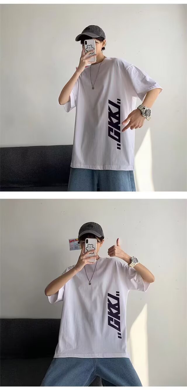 2025 여름 한국 스타일 ins 홍콩 스타일 레터 트렌드 다재다능한 학생 루즈 반팔 티셔츠 남성용 기본 셔츠스토어 가기