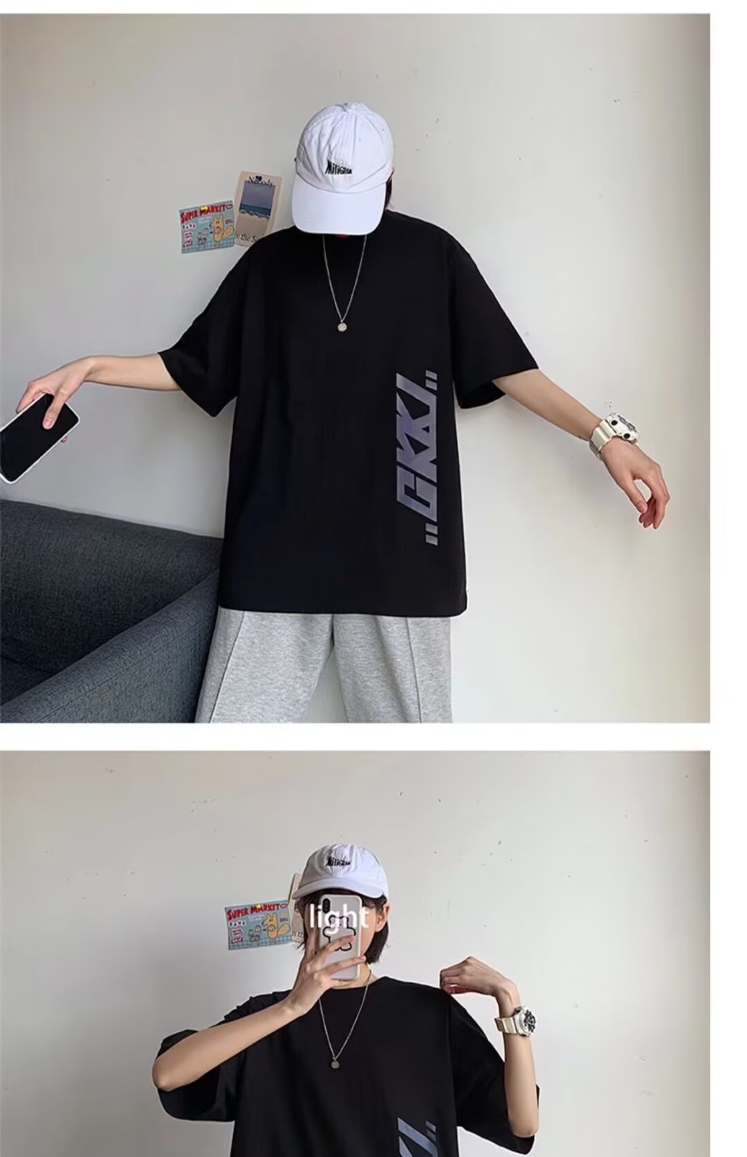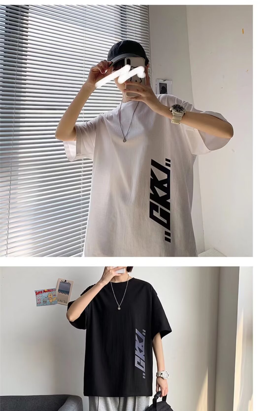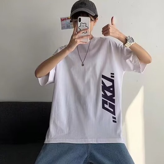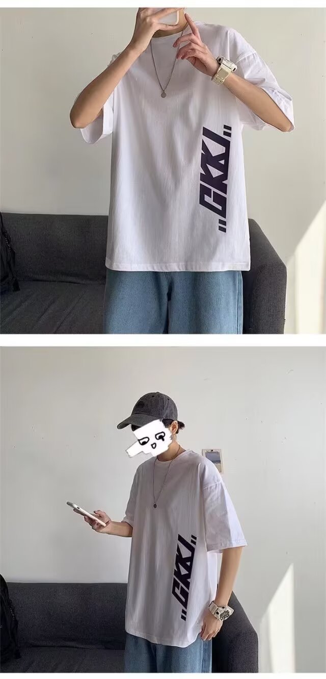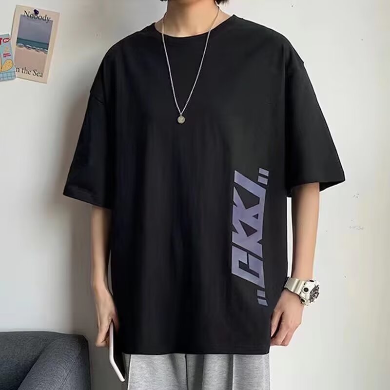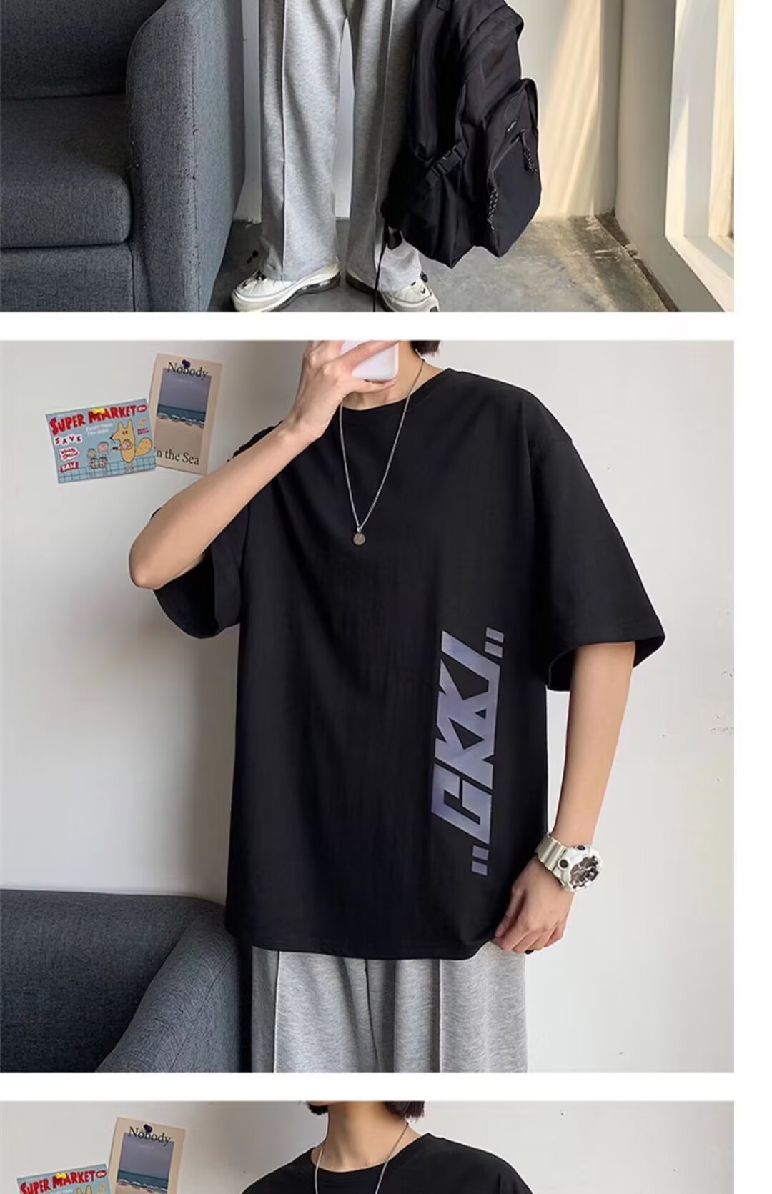 2025 여름 한국 스타일 ins 홍콩 스타일 레터 트렌드 다재다능한 학생 루즈 반팔 티셔츠 남성용 기본 셔츠스토어 가기
