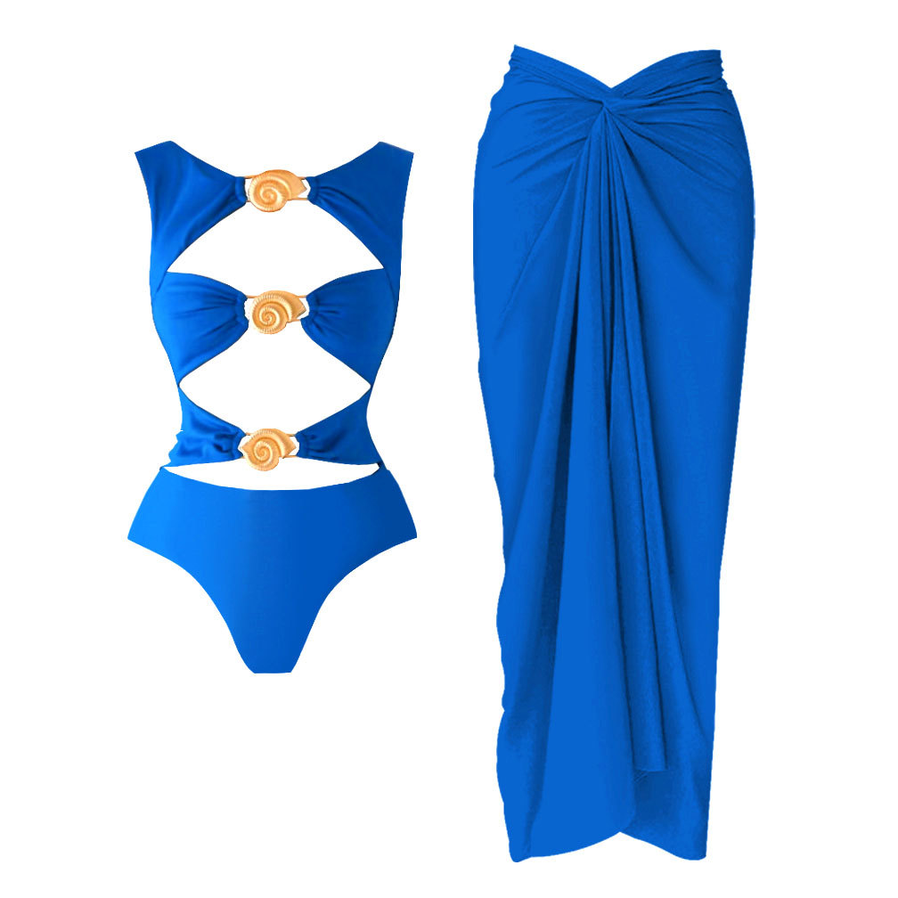 유럽과 미국의 단색 중공 섹시한 삼각형 원피스 수영복 여성 국경 간 대외 무역 수영복 세트 2025 새로운 스타일스토어 가기