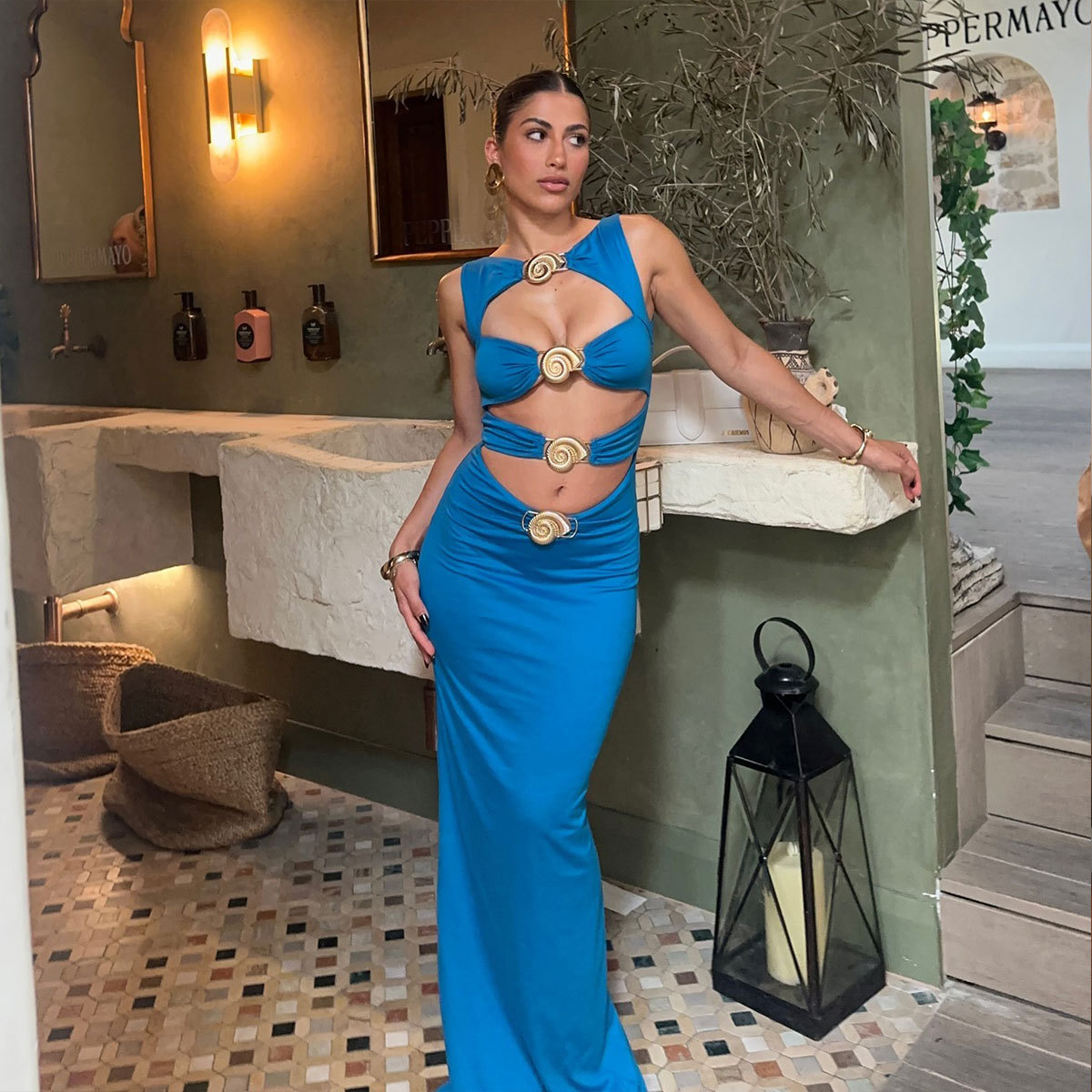 유럽과 미국의 단색 중공 섹시한 삼각형 원피스 수영복 여성 국경 간 대외 무역 수영복 세트 2025 새로운 스타일
