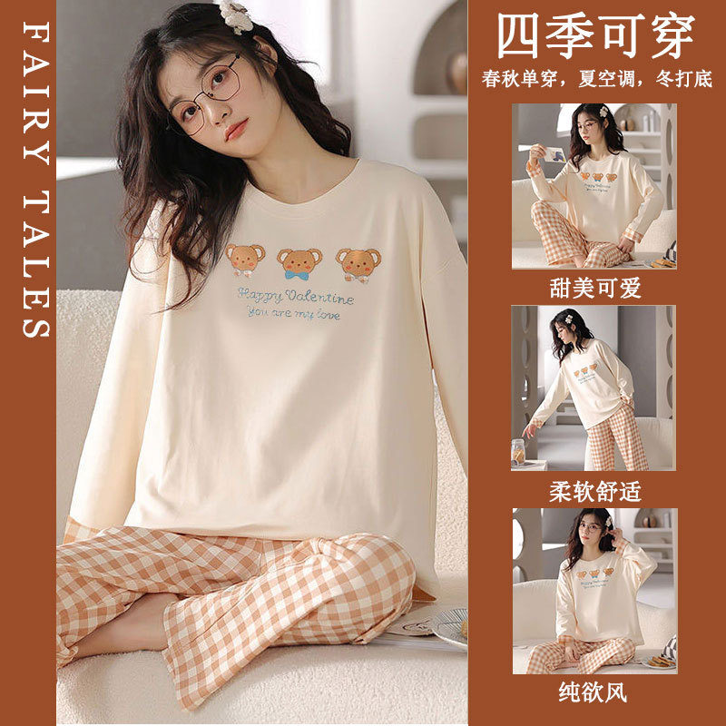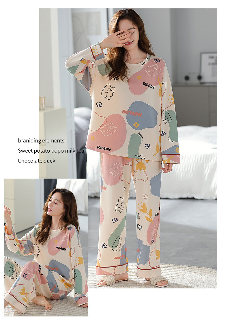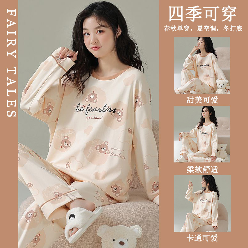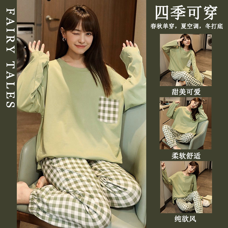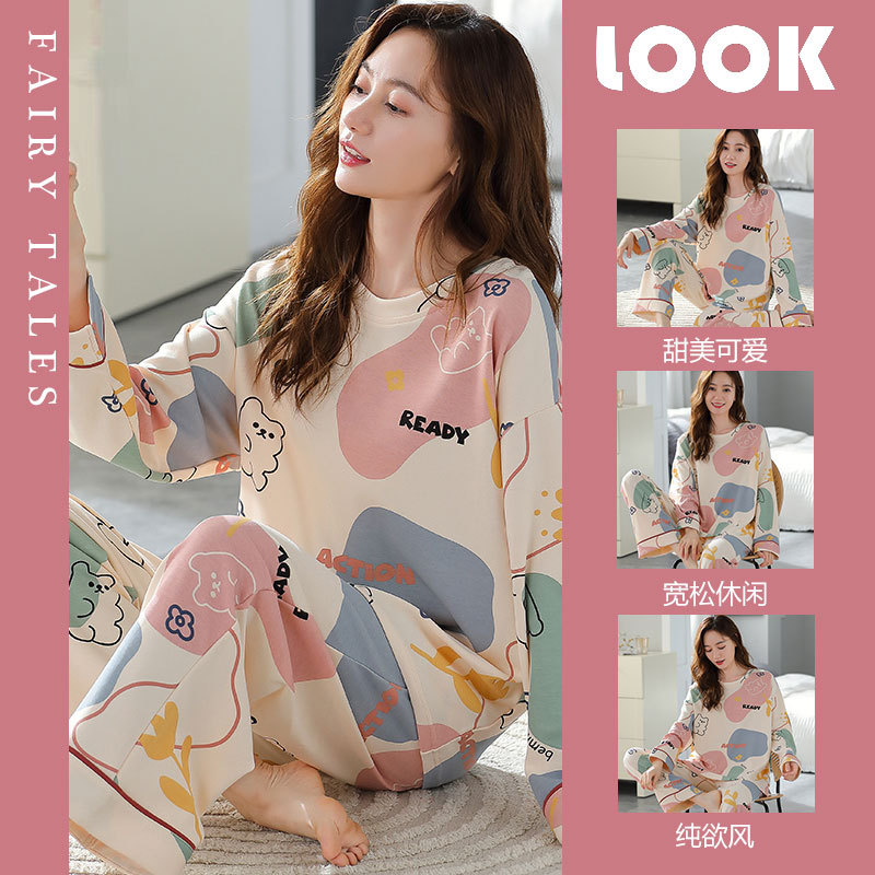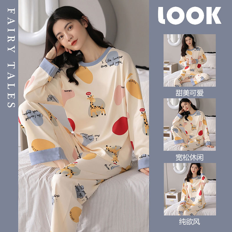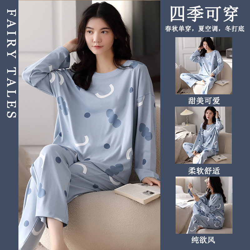 한국판 봄가을 여성용 잠옷, 순면 긴팔 긴바지, 2026년 신상, 플러스 사이즈 홈웨어, 외출복 세트스토어 가기