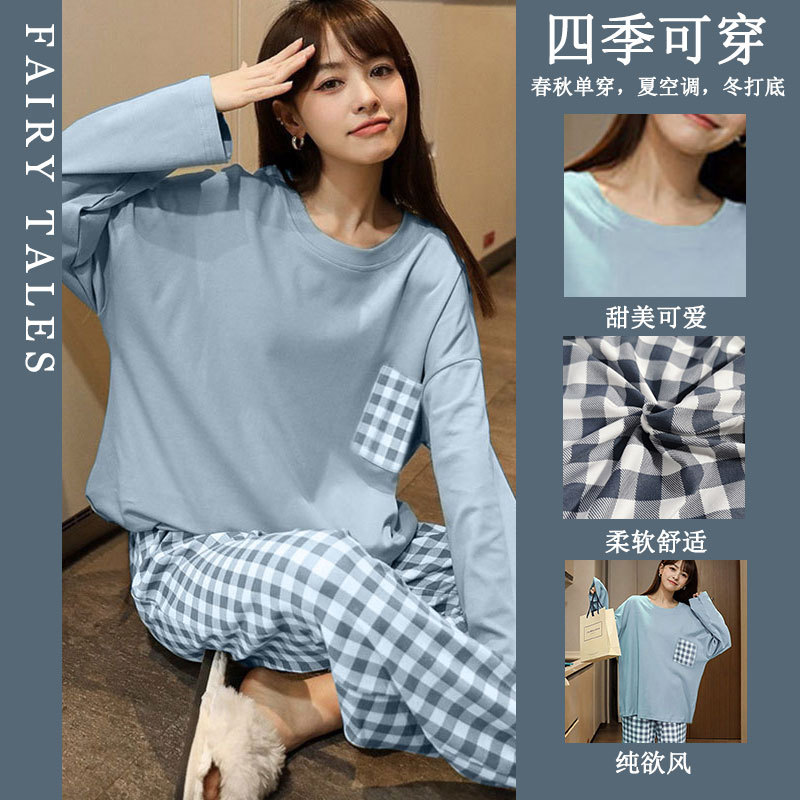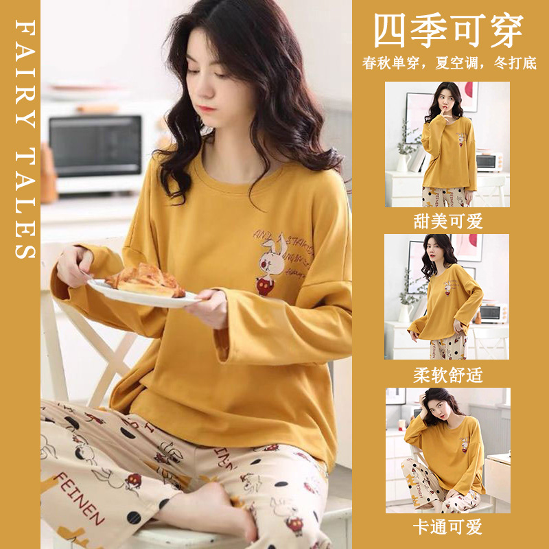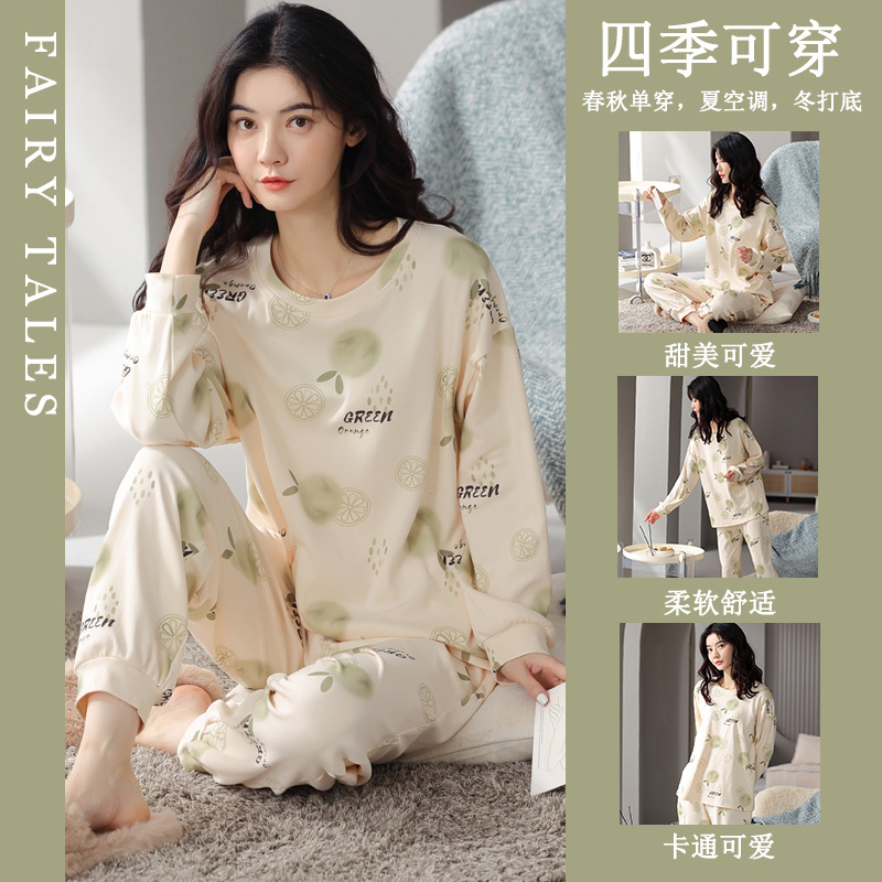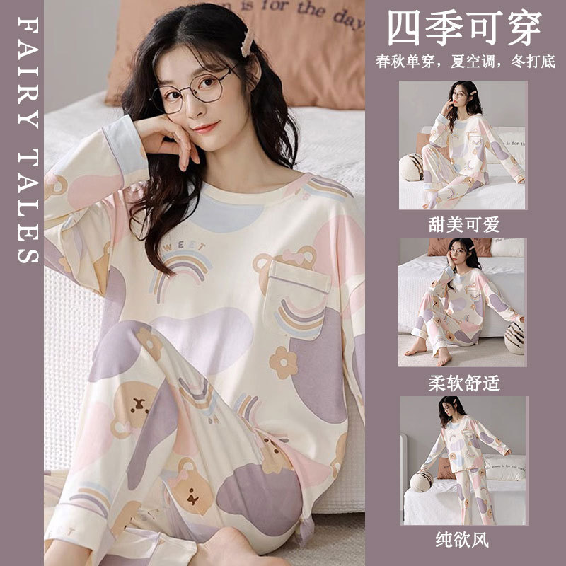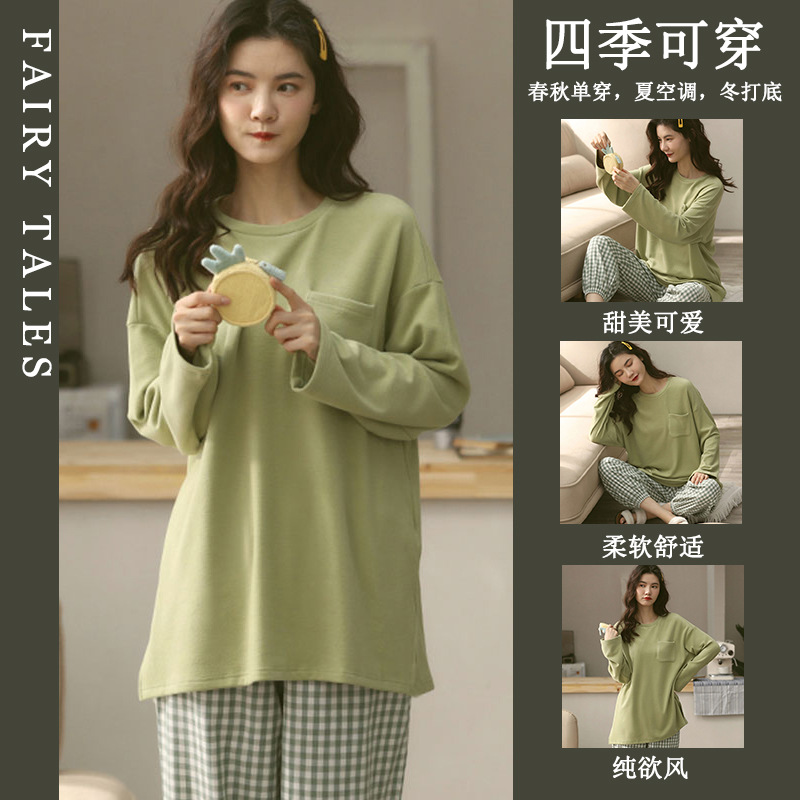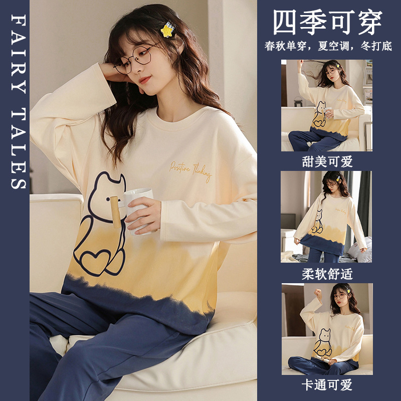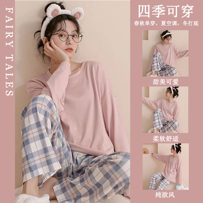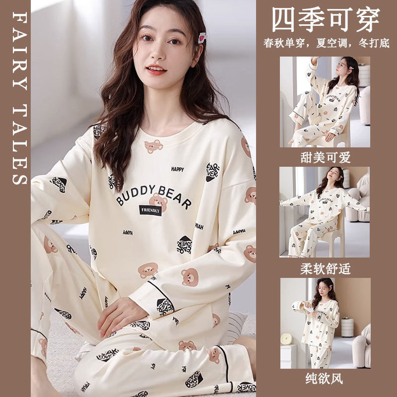 한국판 봄가을 여성용 잠옷, 순면 긴팔 긴바지, 2026년 신상, 플러스 사이즈 홈웨어, 외출복 세트스토어 가기