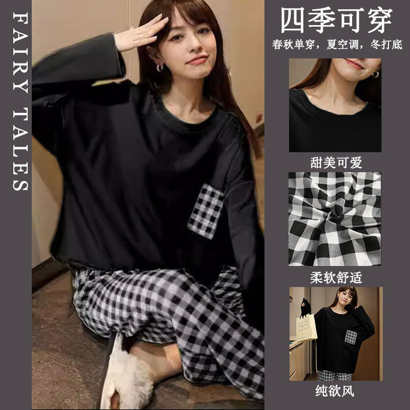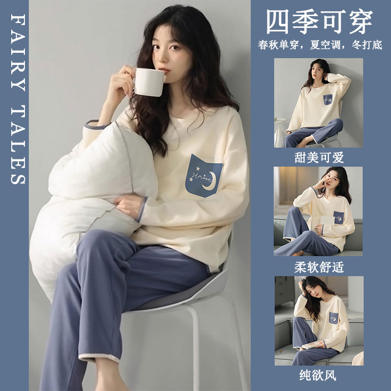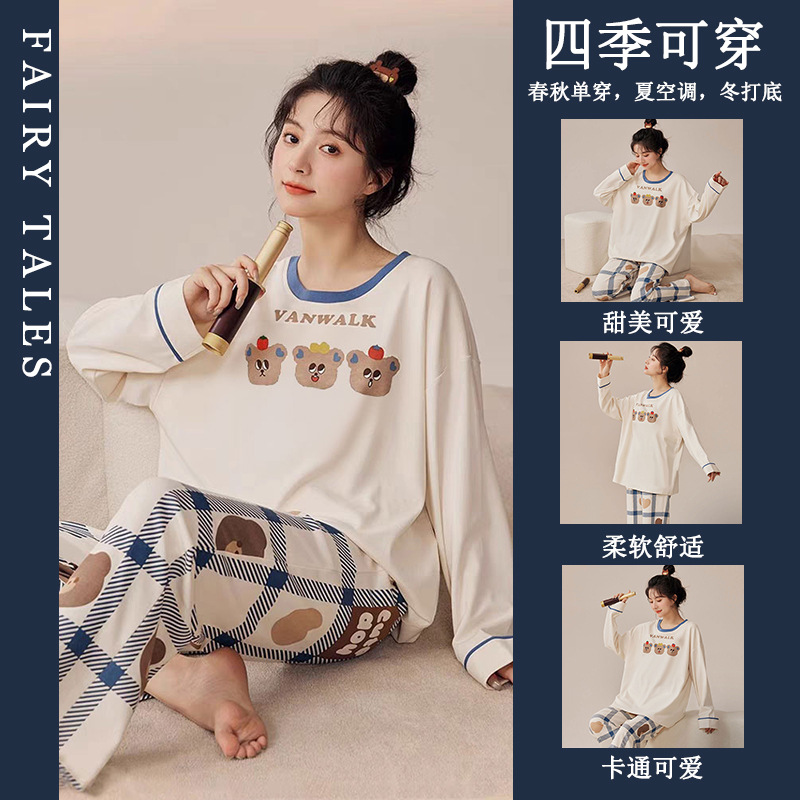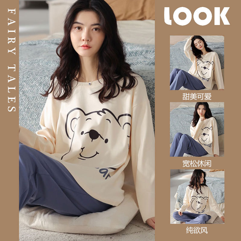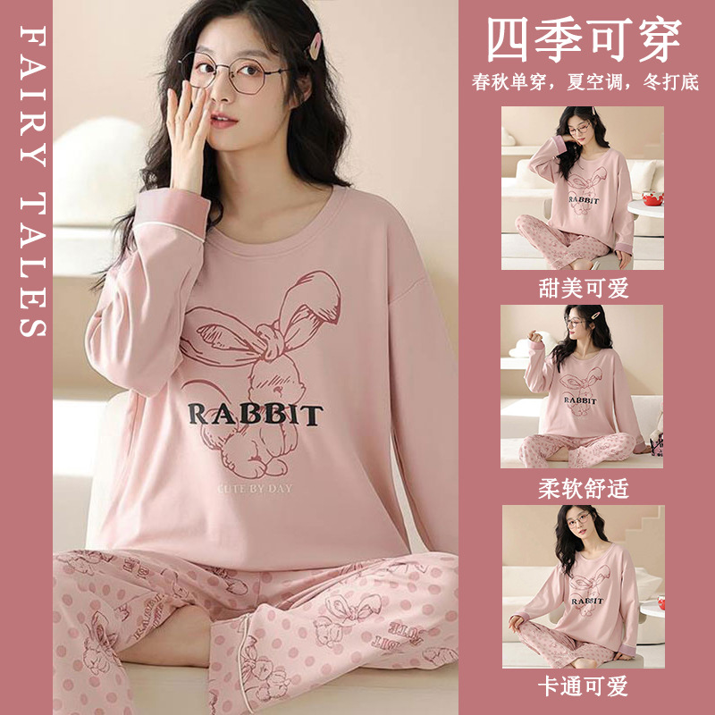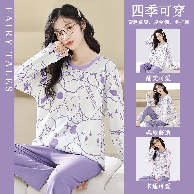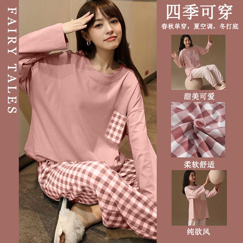한국판 봄가을 여성용 잠옷, 순면 긴팔 긴바지, 2026년 신상, 플러스 사이즈 홈웨어, 외출복 세트스토어 가기