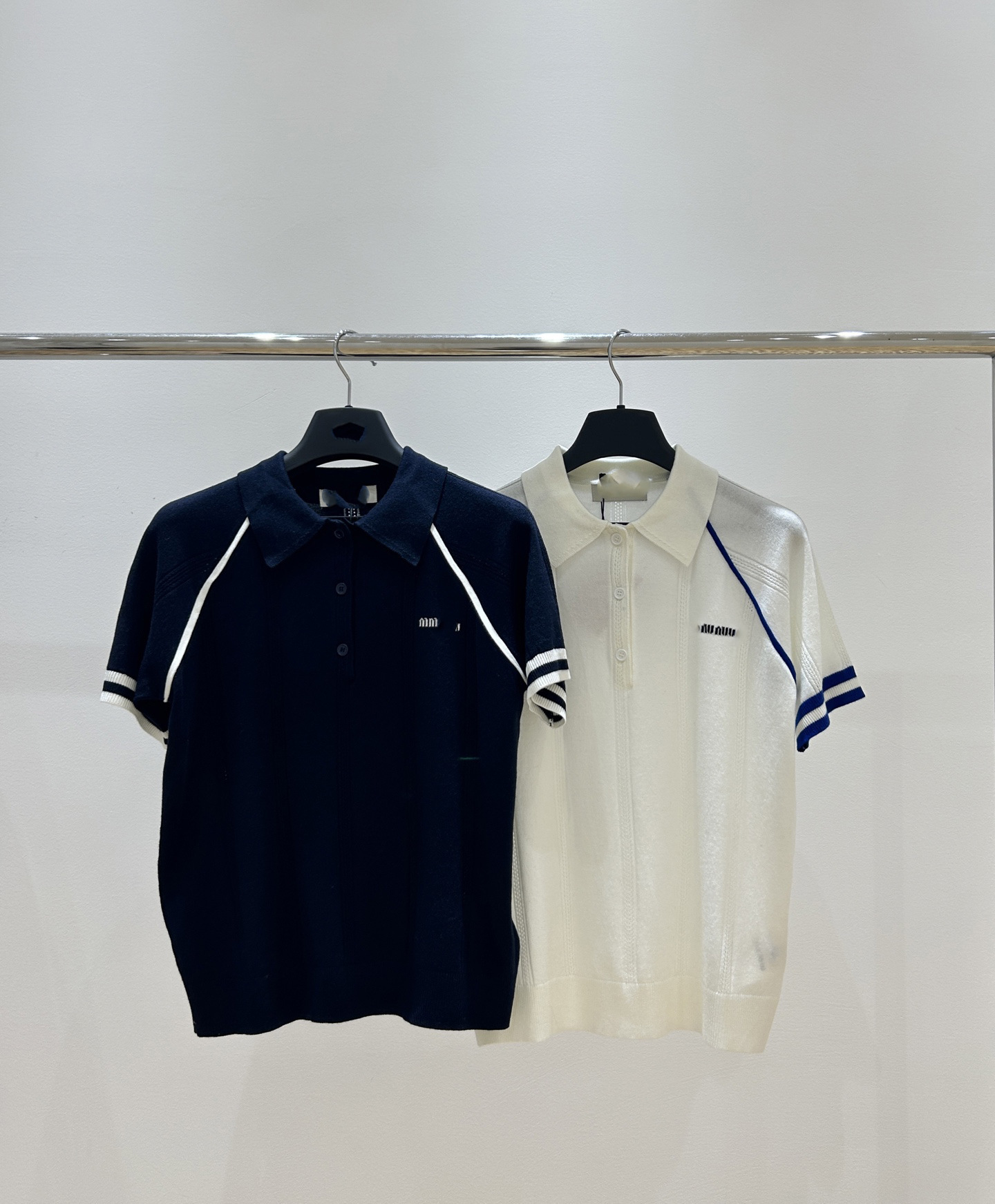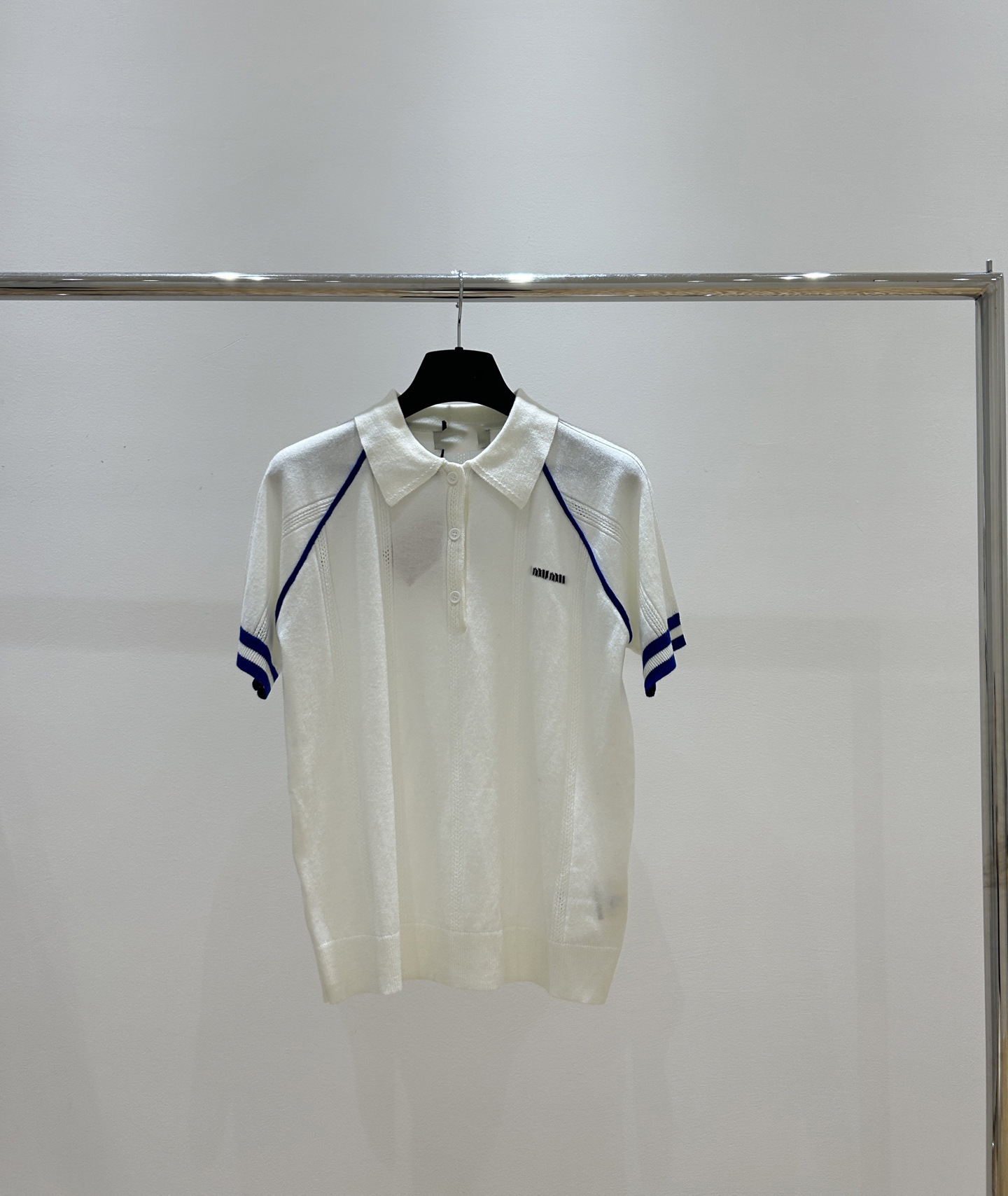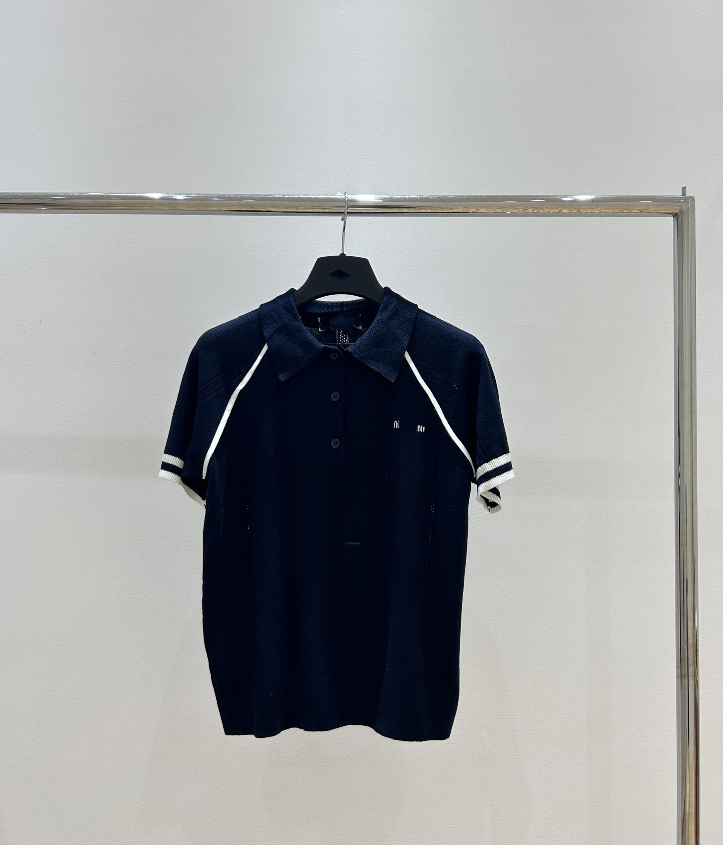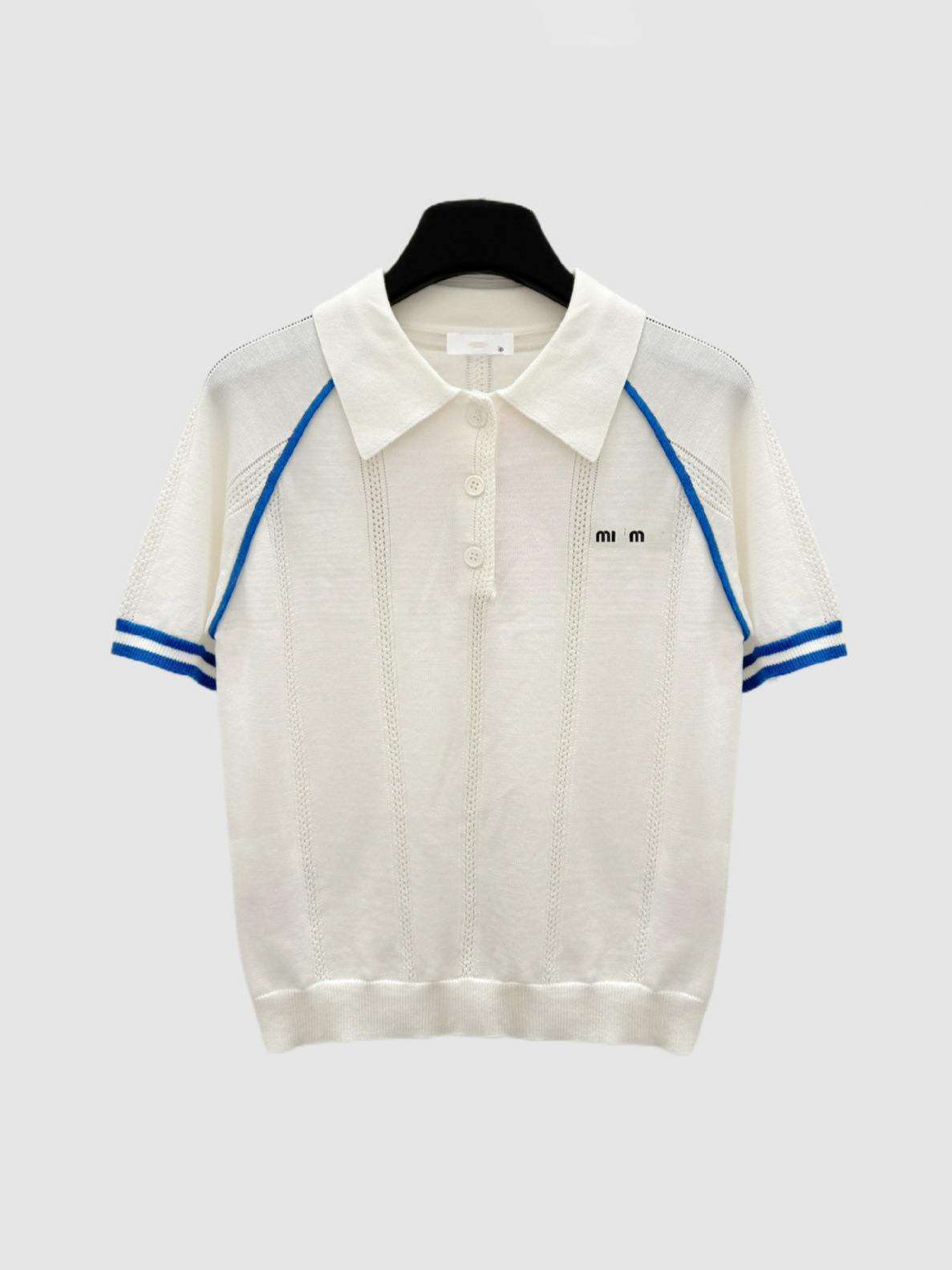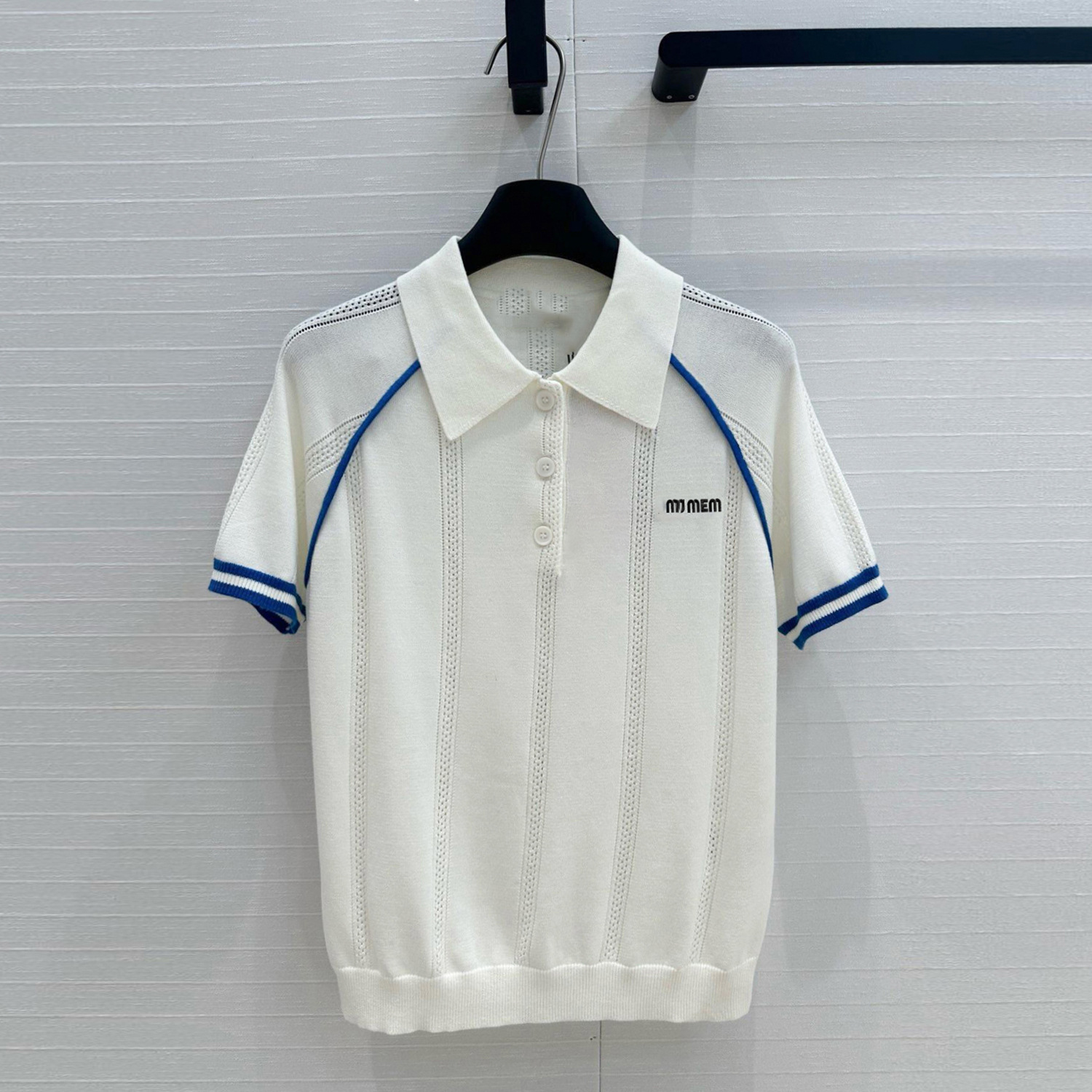MM 심천 Nanyou 하이 엔드 여성 2025 여름 프랑스 대학 스타일 스트라이프 화이트 니트 티셔츠 탑스토어 가기