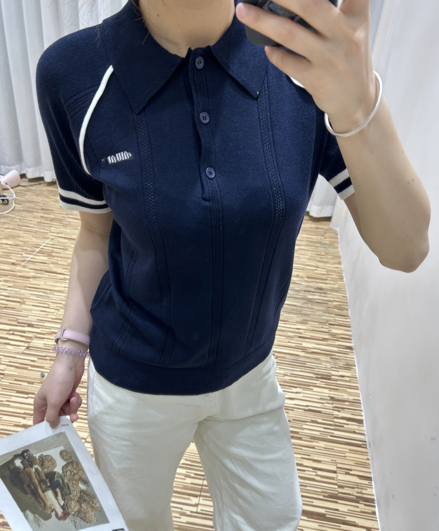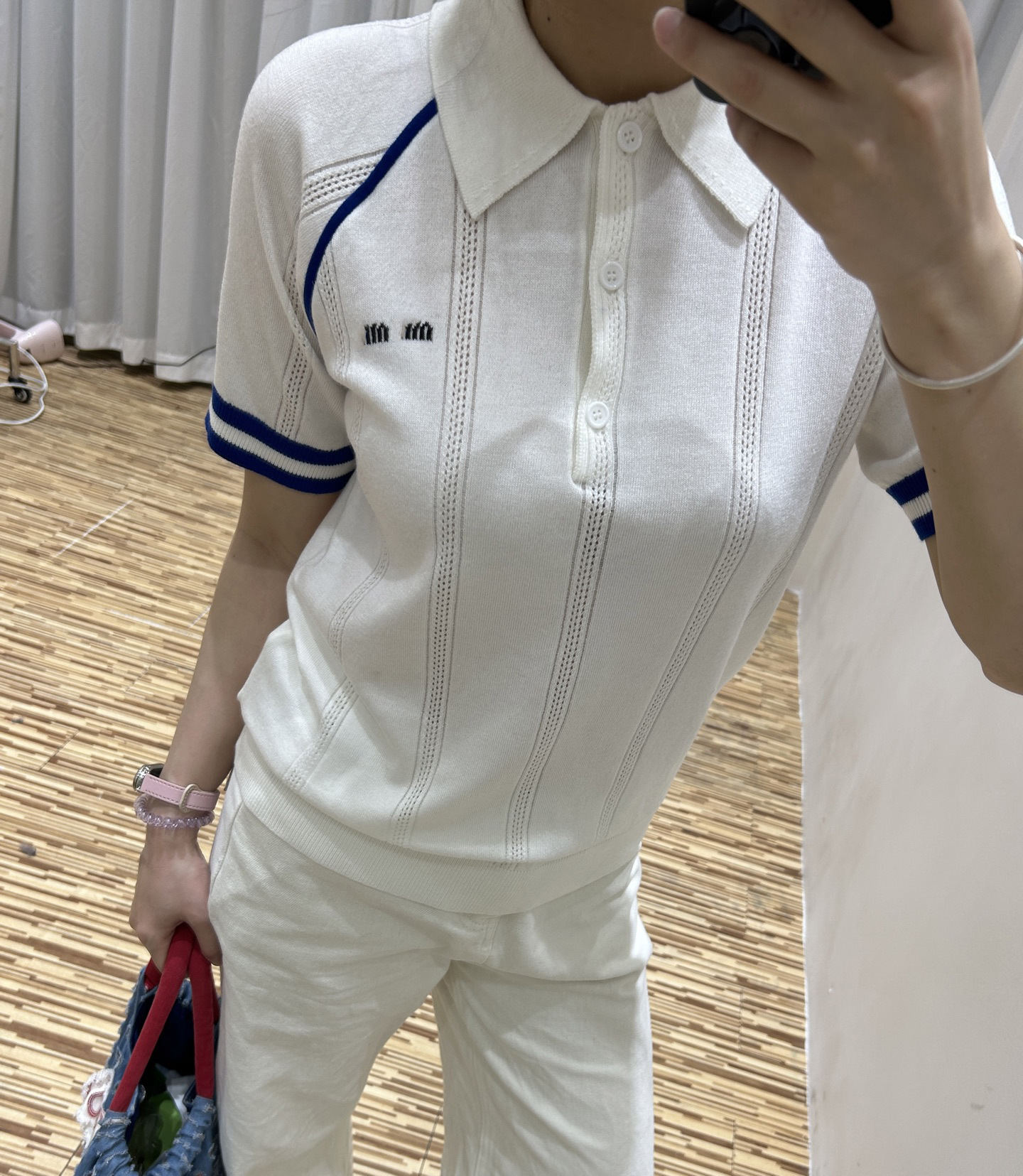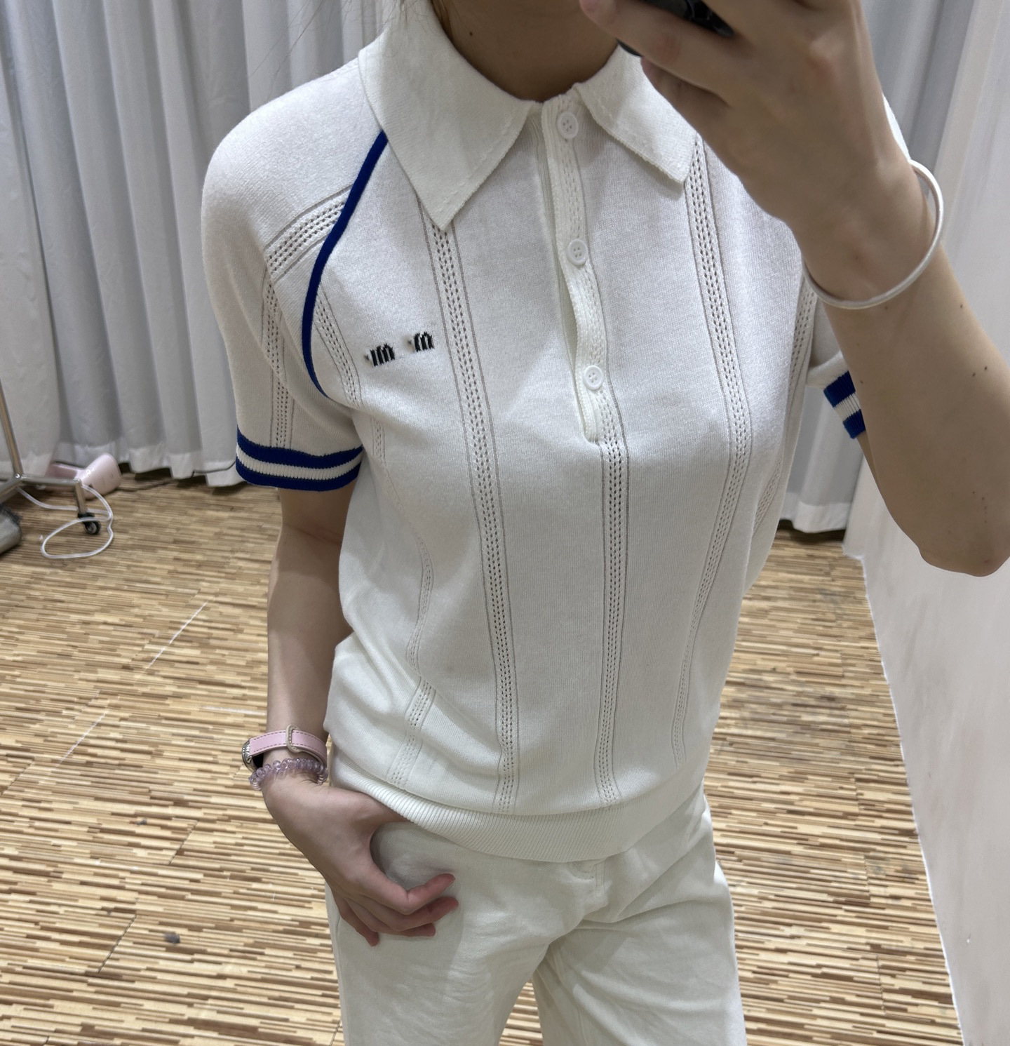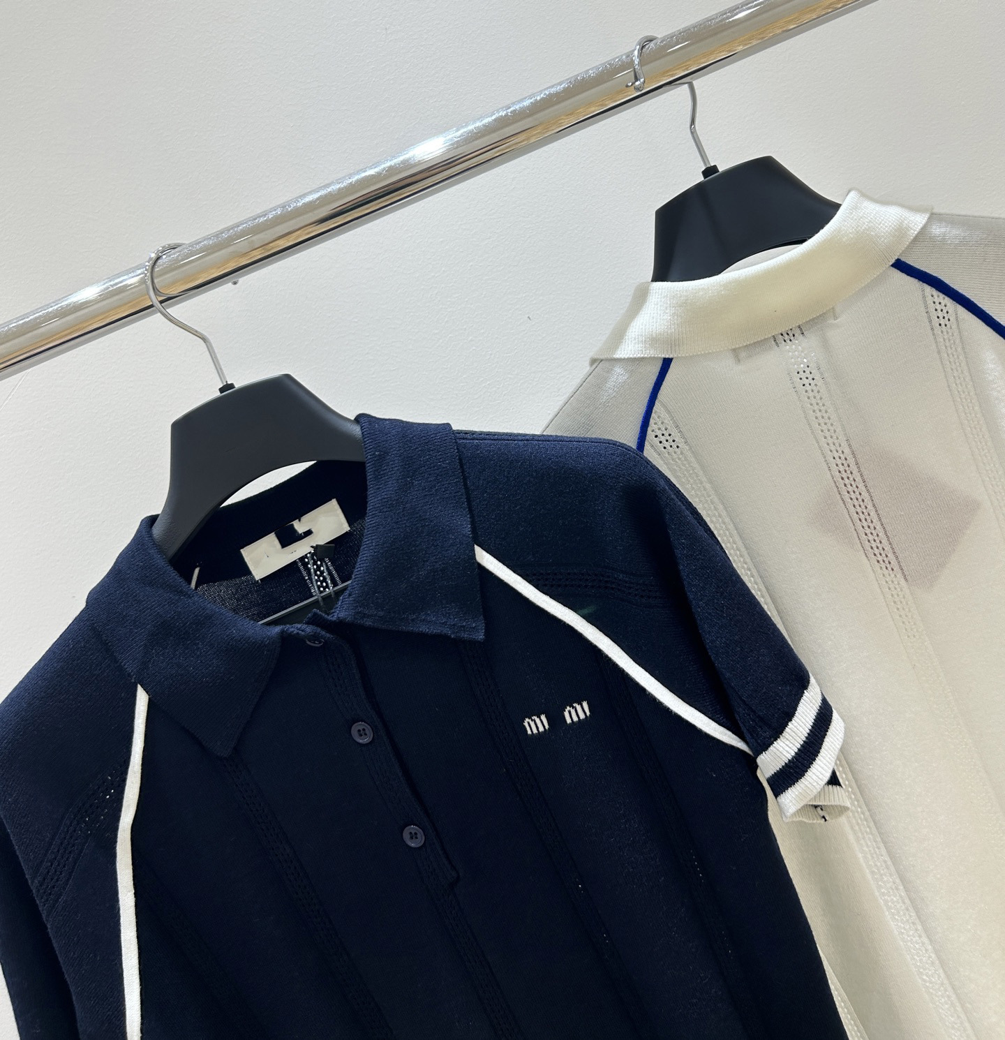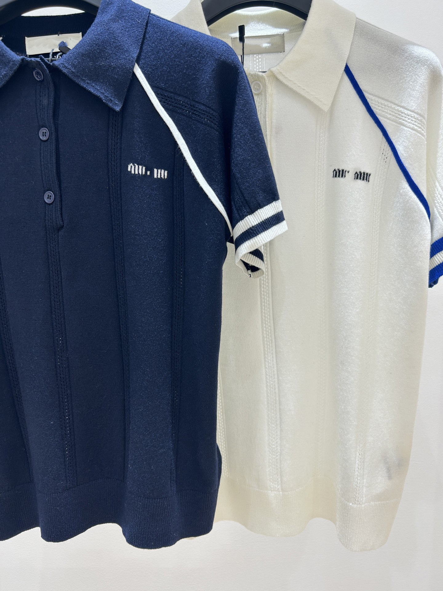 MM 심천 Nanyou 하이 엔드 여성 2025 여름 프랑스 대학 스타일 스트라이프 화이트 니트 티셔츠 탑스토어 가기