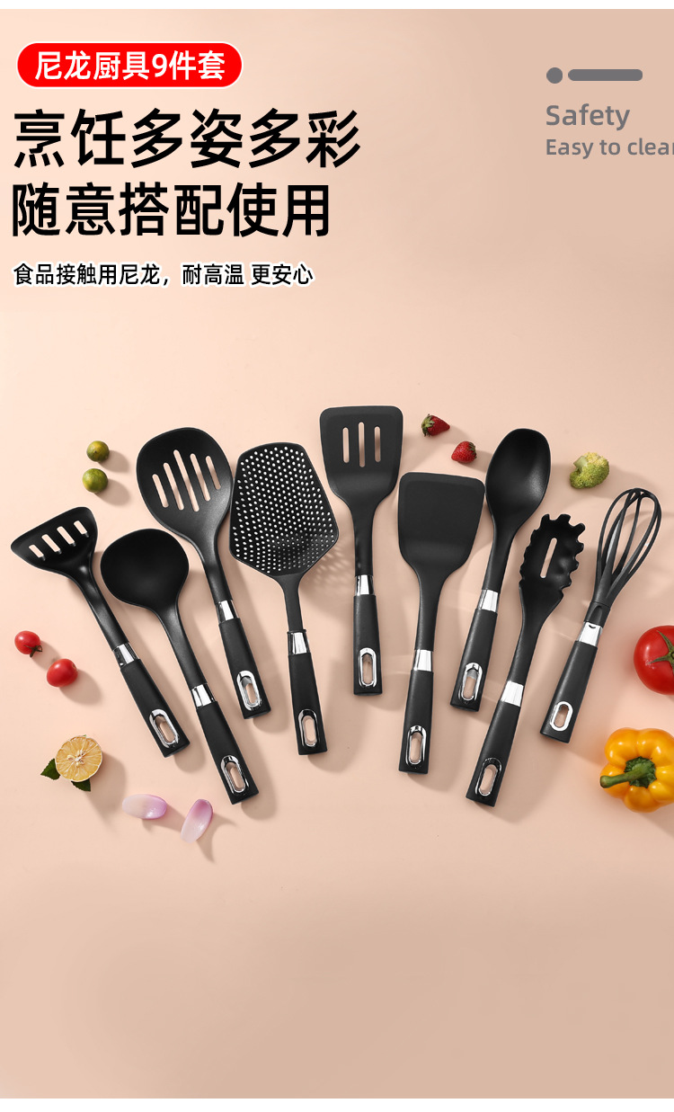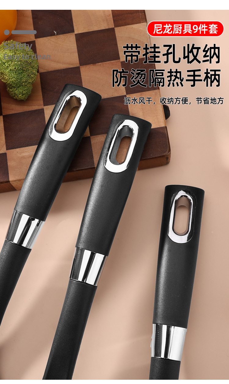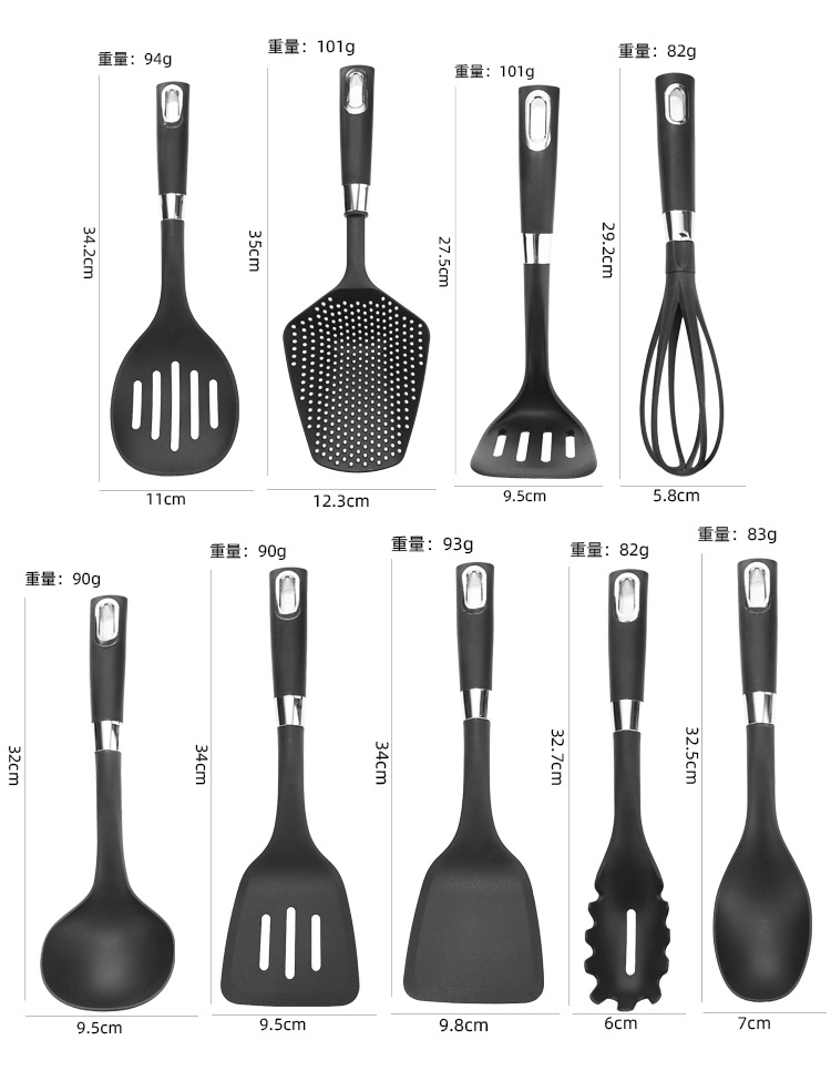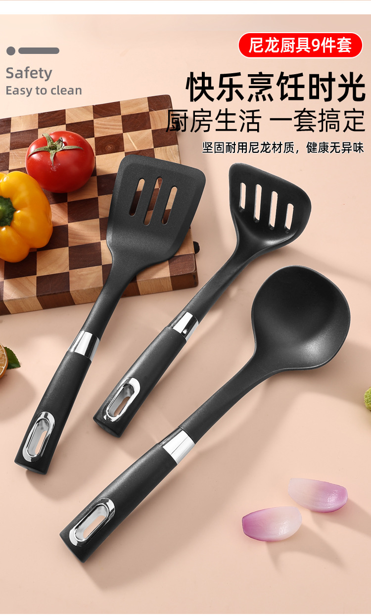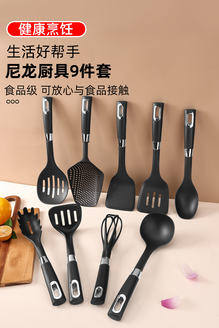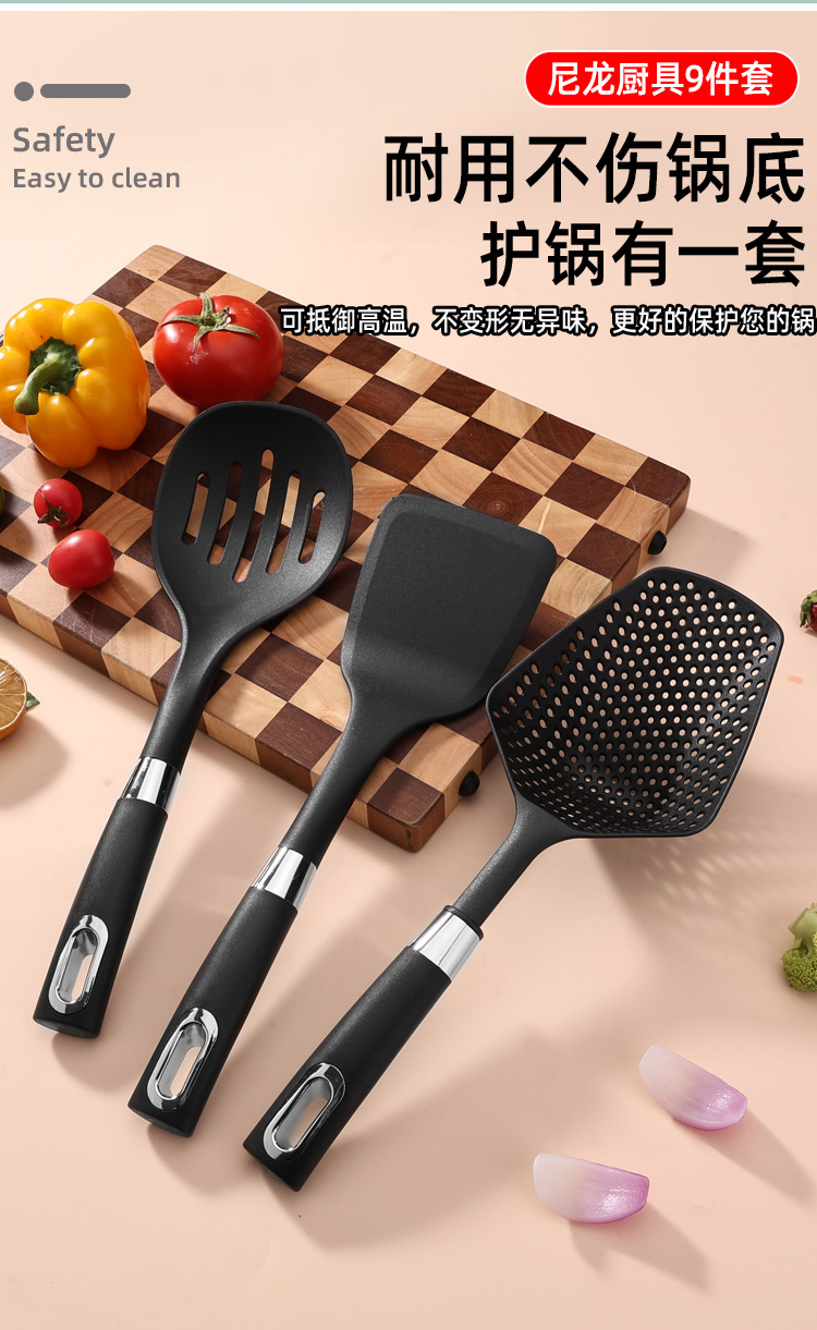 나일론 주방용품 9종 세트, 가정용 붙지 않는 냄비, 주걱, 계란 비터, 주방 요리 주걱 및 스푼 도구 세트