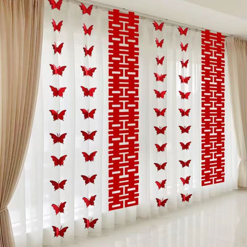 웨딩 룸 레이아웃 빨간색 작은 나비 꽃 라이트 핑크 웨딩 커튼 꽃 장식 축제 용품 로맨틱하고 따뜻한스토어 가기