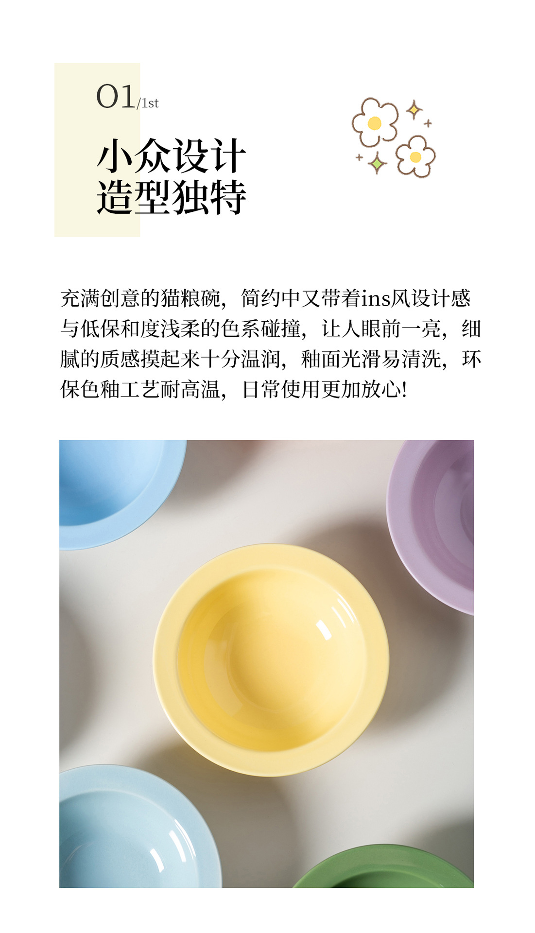 Ins 스타일 마카롱 컬러 엣지 보호 애완 동물 그릇 고가 세라믹 그릇 고양이 그릇 개 그릇 안티 블랙 턱 음식 그릇 개 그릇스토어 가기