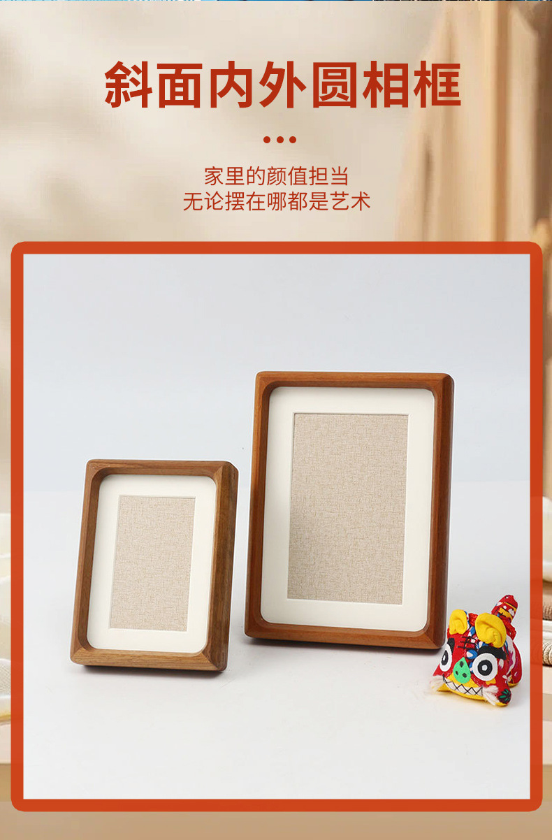 고급 단단한 나무 모따기 공예 방습 사진 프레임 거실 장식 프레임 내부 및 외부 둥근 가장자리가 있는 단단한 나무 입체 경사 사진 프레임