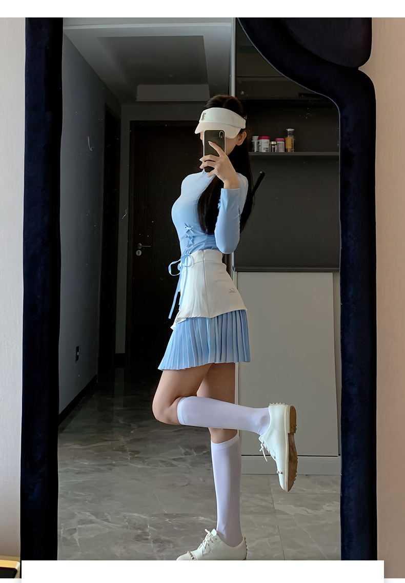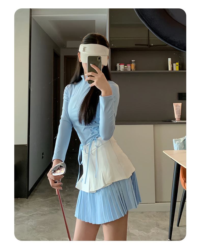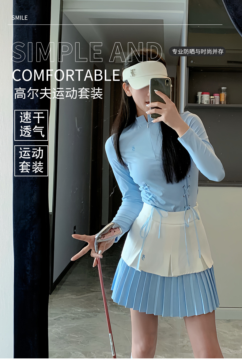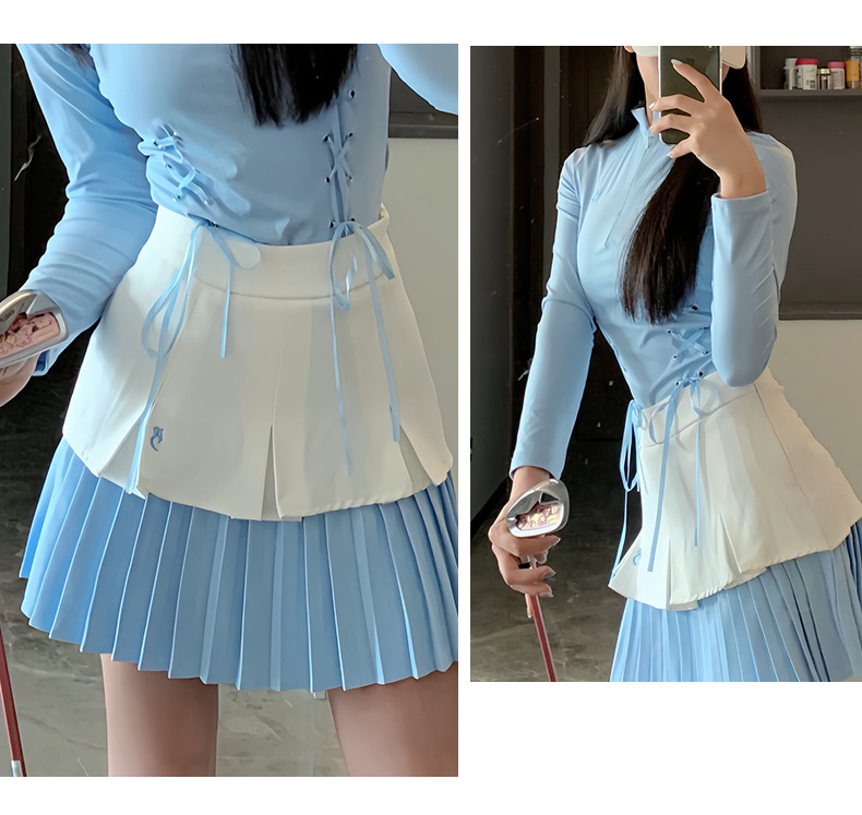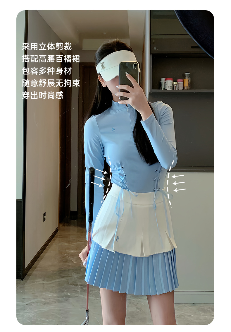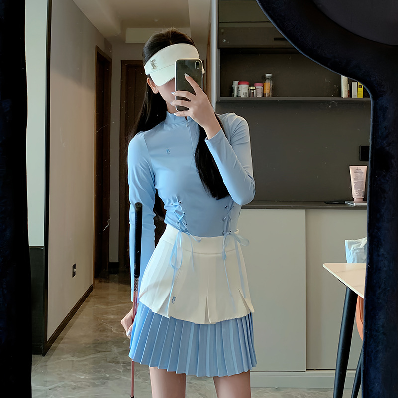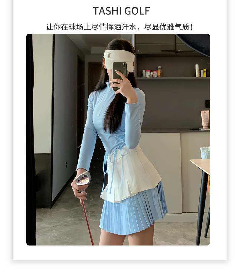 TASHI GOLF 가을 한국 골프 여성 의류 슬림 긴팔 탑 스트레치 속건성 플리츠 스커트스토어 가기
