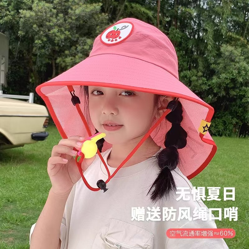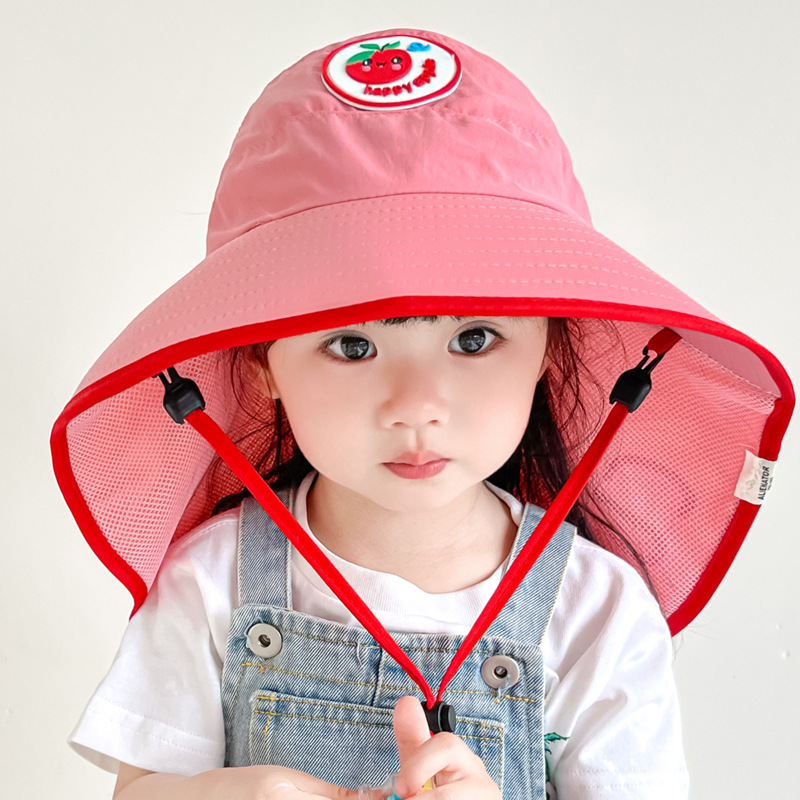 • 로즈핑크-어린이 사과 숄 자외선 차단 반중공 모자