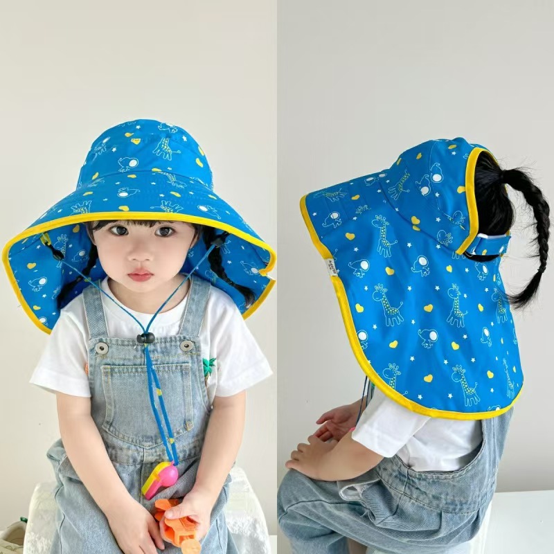 • 블루 - 어린이 사과 숄 자외선 차단제 반 빈 모자