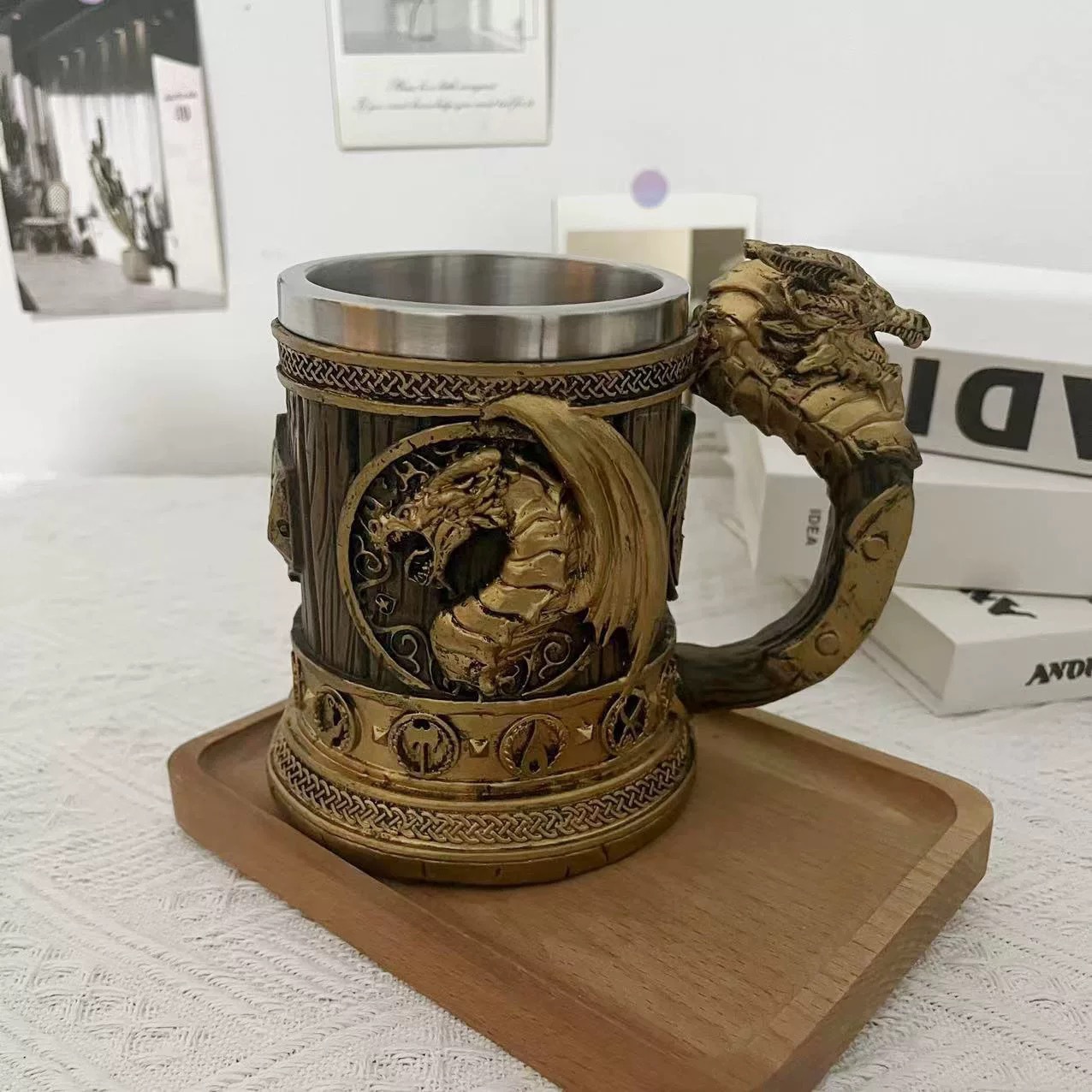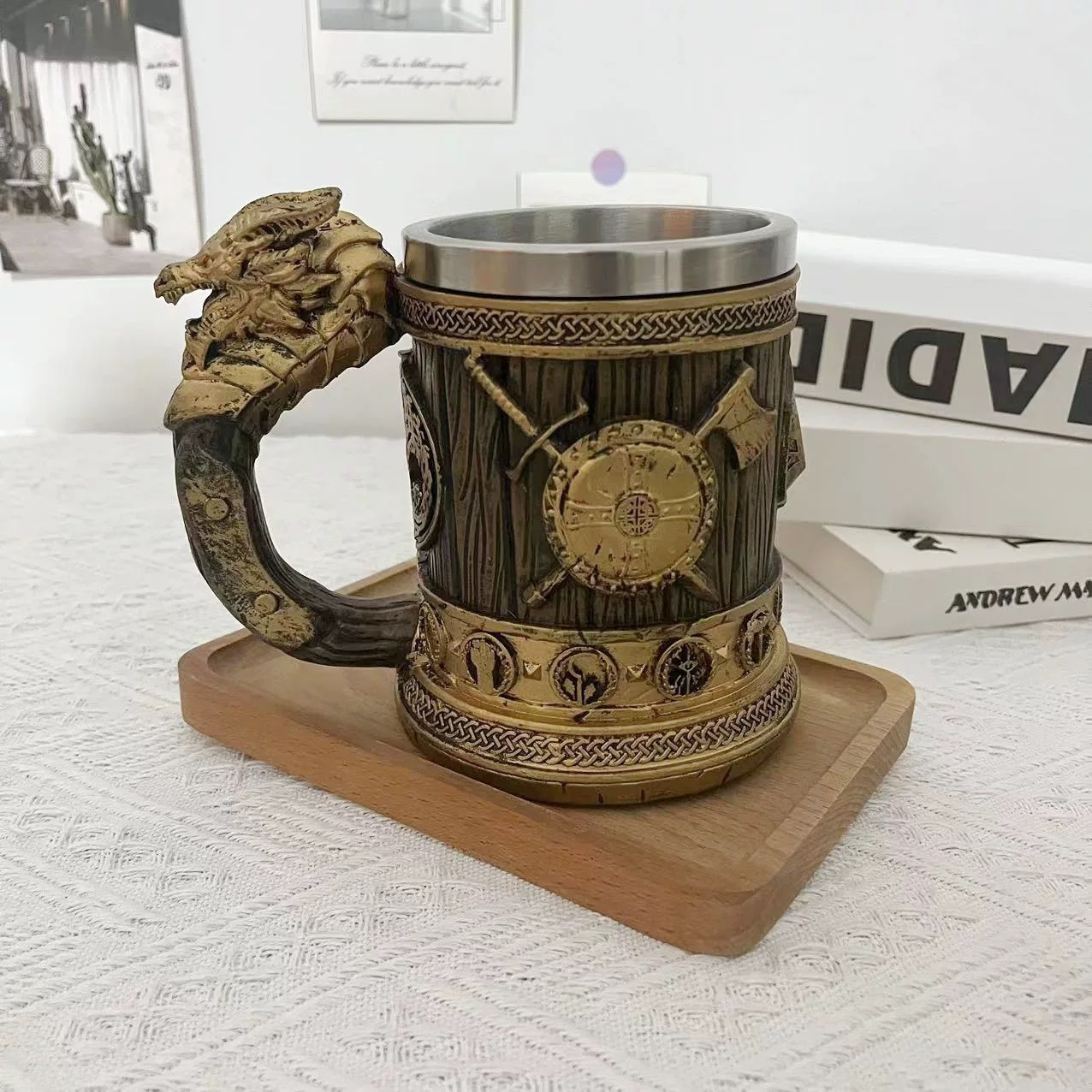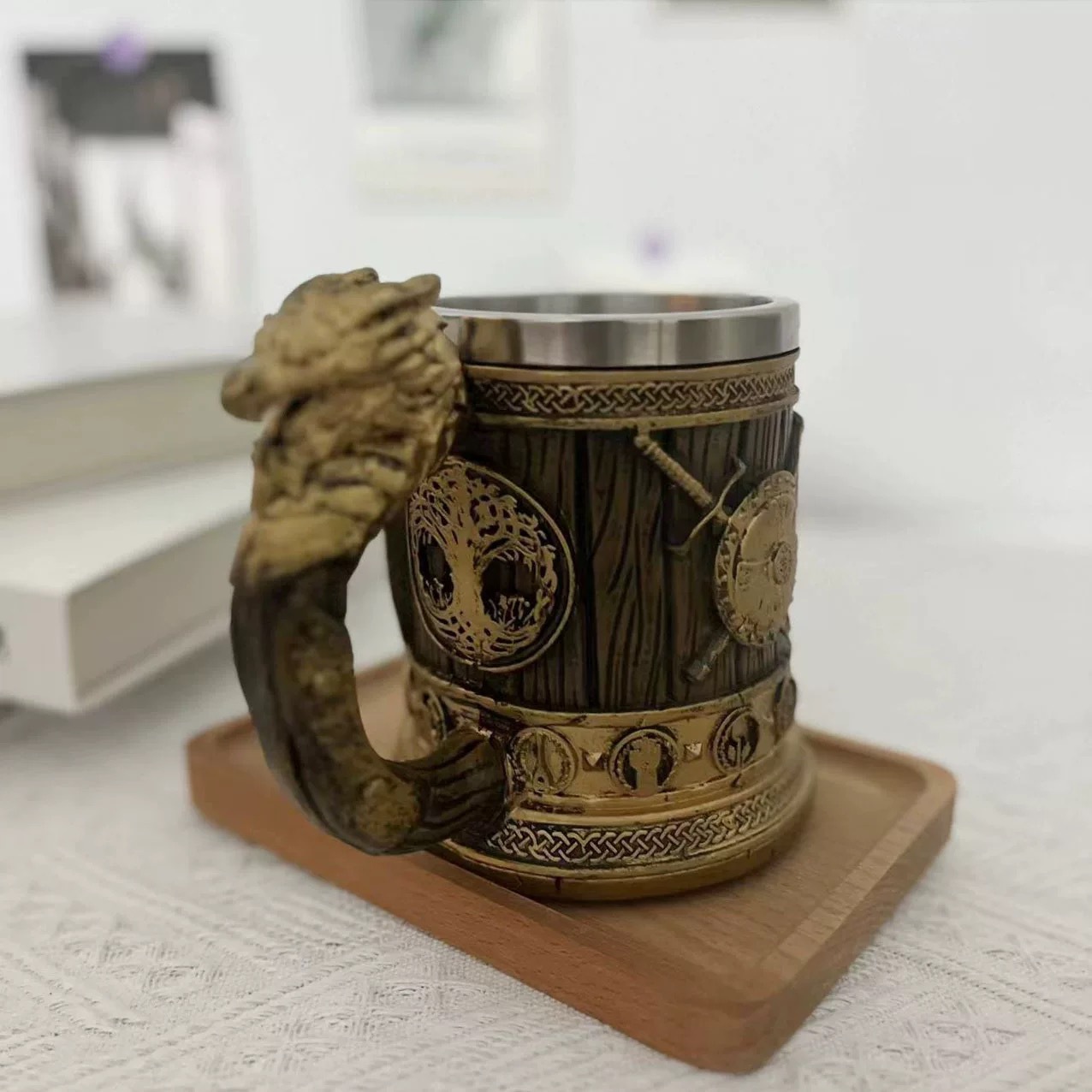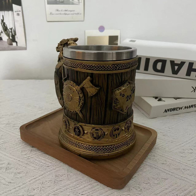 개인화 된 맥주 컵 수지 스테인레스 스틸 수제 크리 에이 티브 바이킹 머그잔 바 홈 인테리어 선물