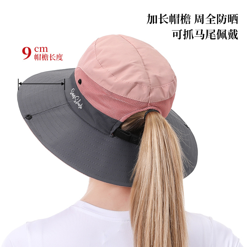 엄선된 여름 여성용 야외 햇빛 가리개 모자, 포니테일 구멍이 있는 버킷햇, 자외선 차단 통기성 부모-자녀 등산 모자