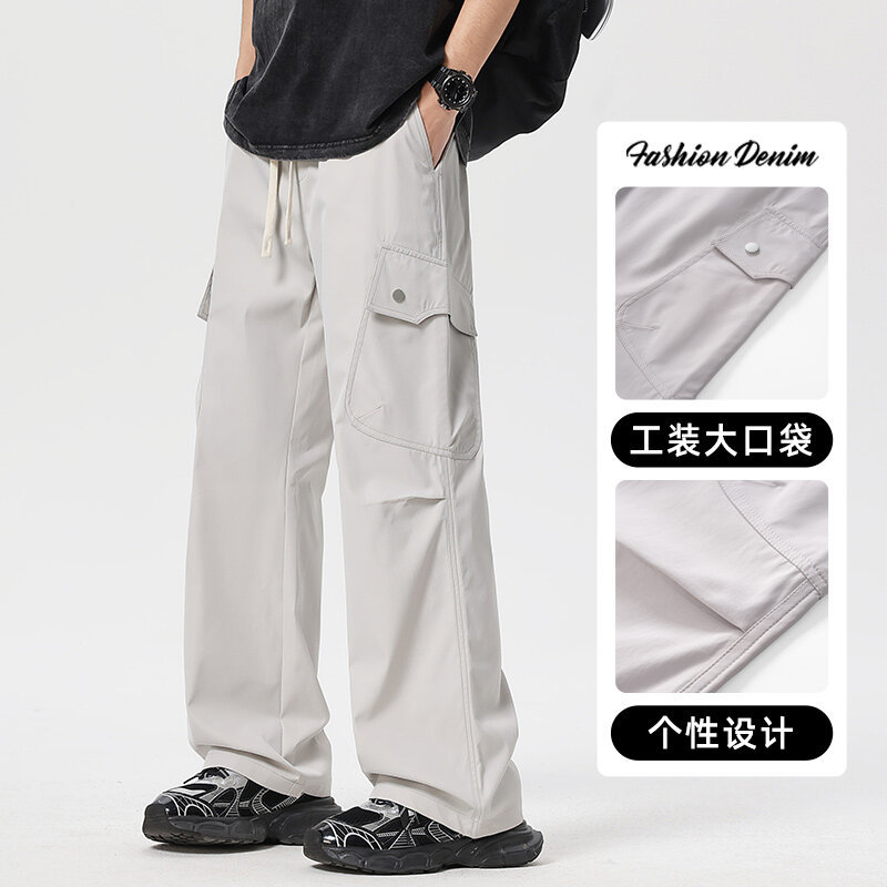 2025년 봄 여름 남성용 기능성 작업복 바지 새로운 스트레이트 레그 충전 바지 루즈 캐주얼 바지