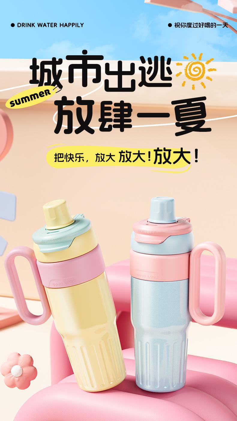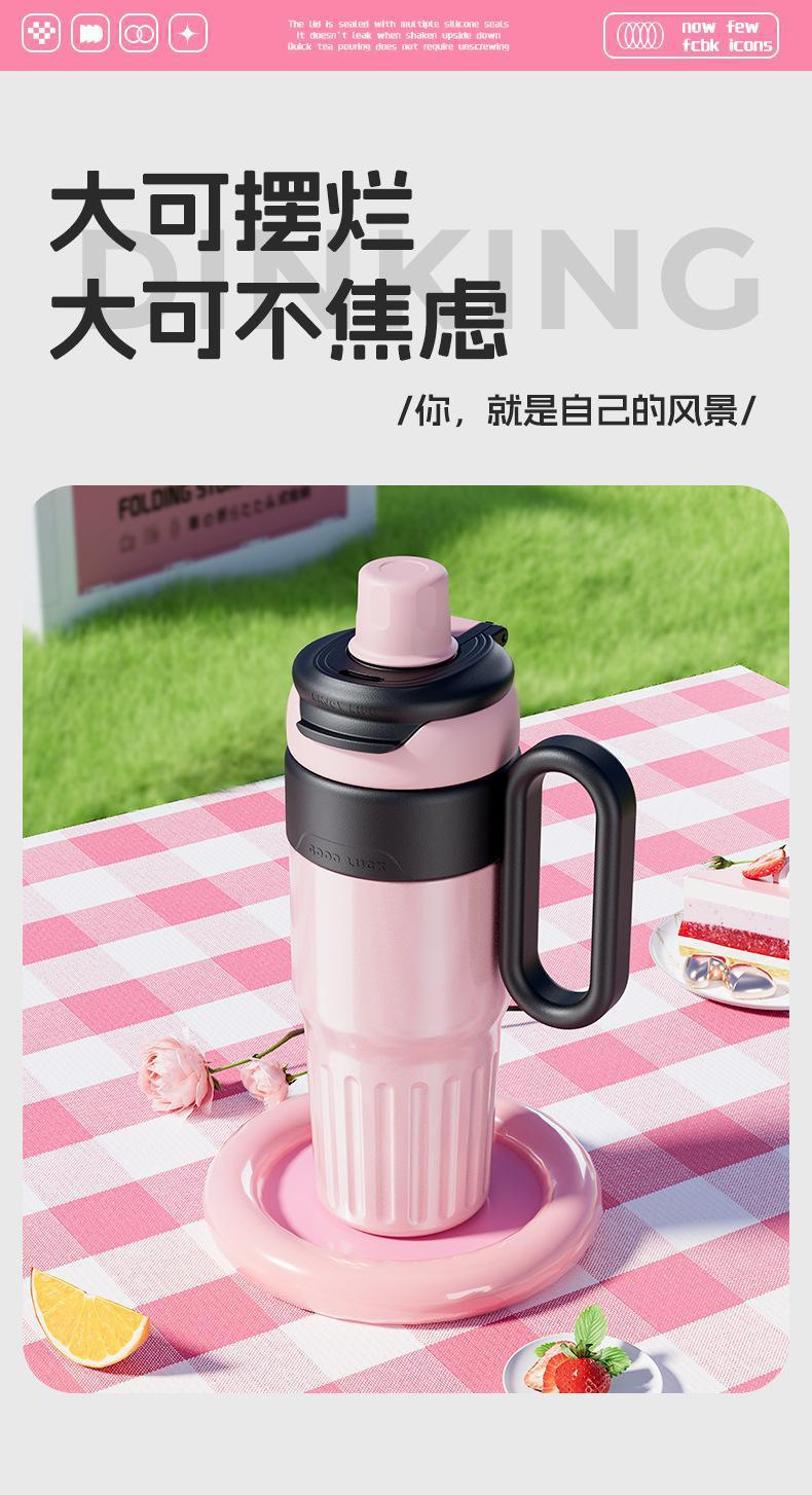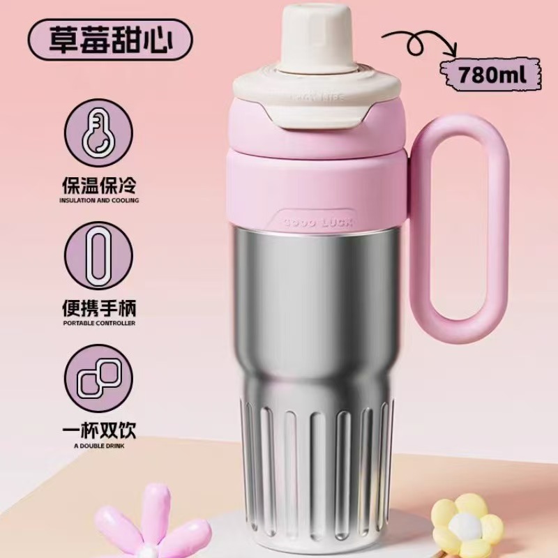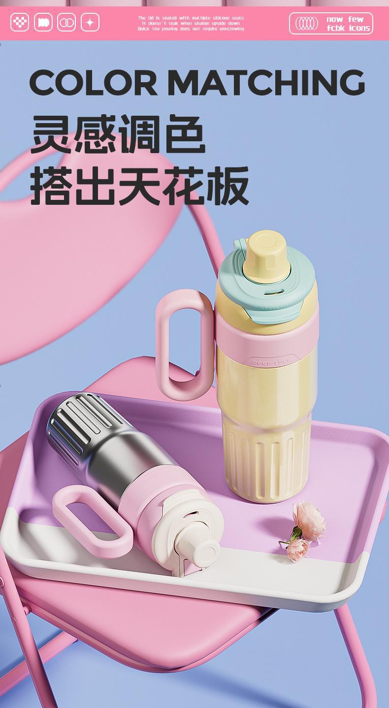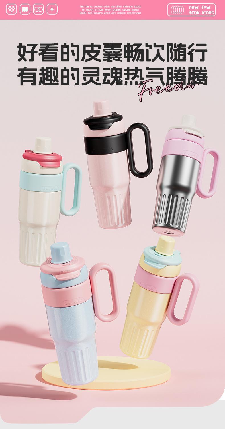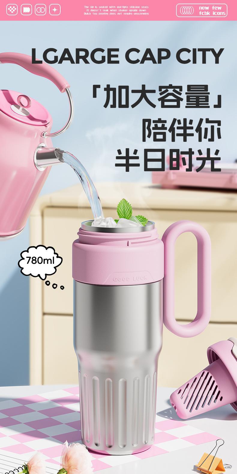 그물 레드 마카롱 컬러 보온병 여성용 높은 컬러 값 휴대용 더블 드루킹 컵 핸들 스테인레스 스틸 자동차 아이스 컵