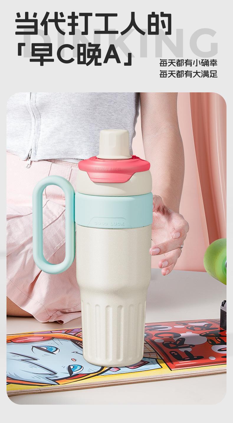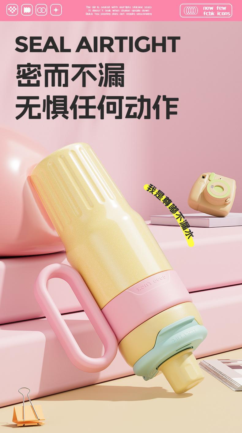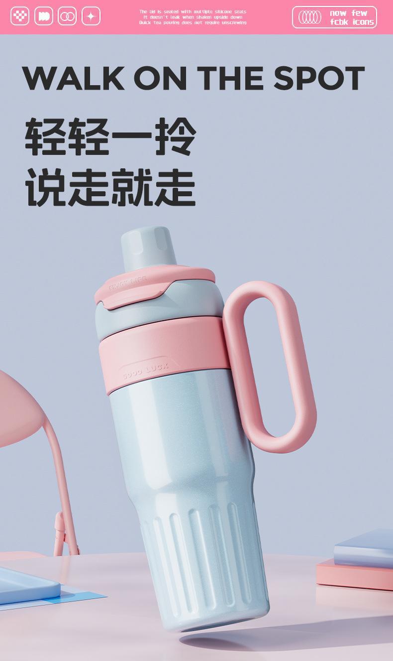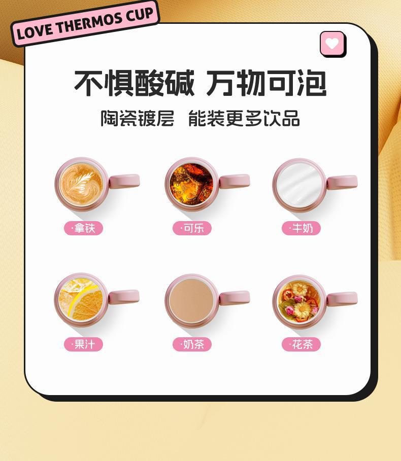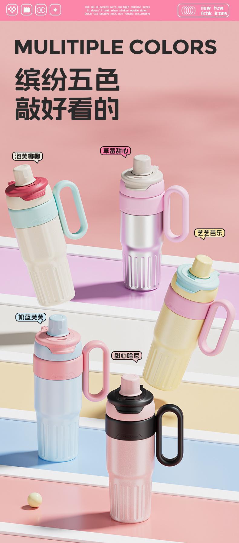그물 레드 마카롱 컬러 보온병 여성용 높은 컬러 값 휴대용 더블 드루킹 컵 핸들 스테인레스 스틸 자동차 아이스 컵