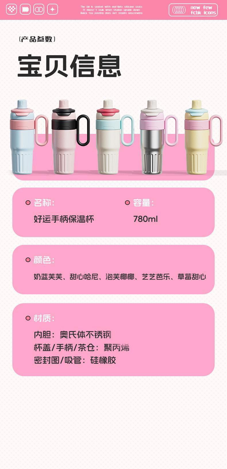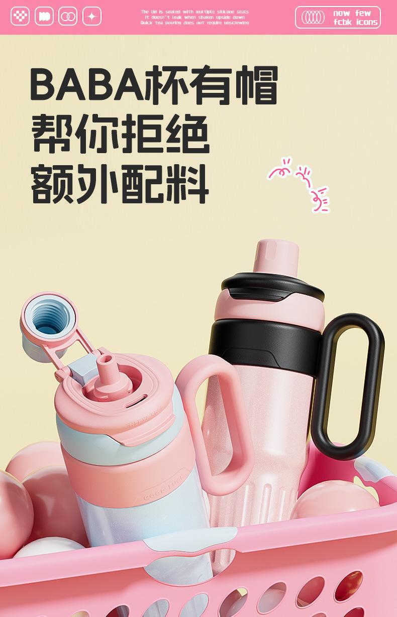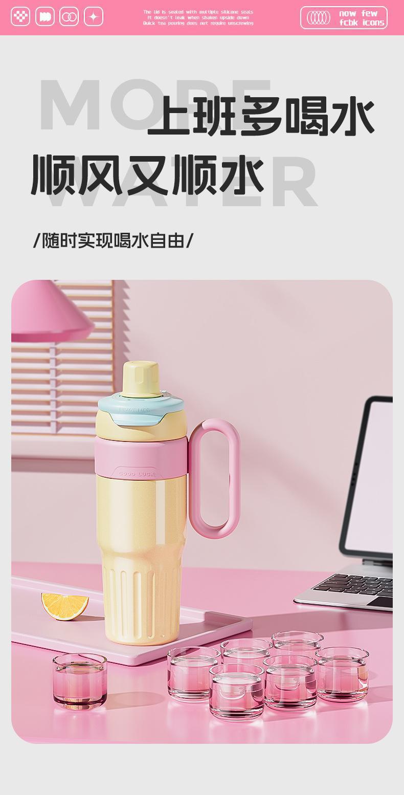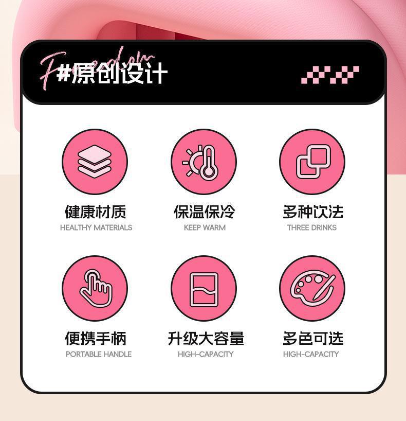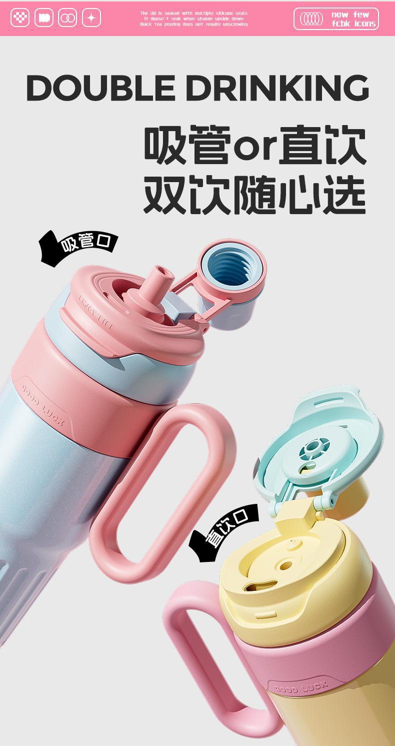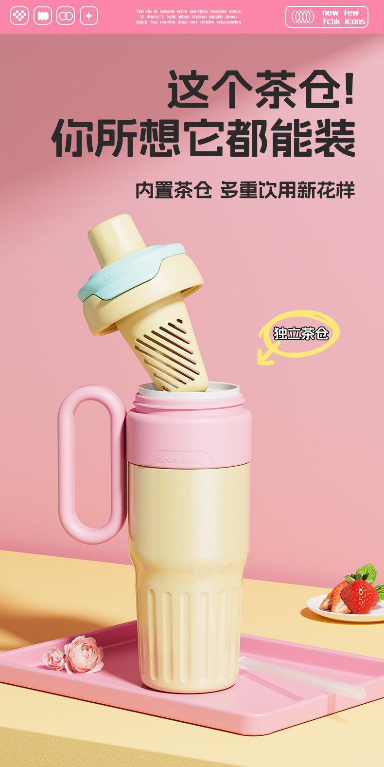 그물 레드 마카롱 컬러 보온병 여성용 높은 컬러 값 휴대용 더블 드루킹 컵 핸들 스테인레스 스틸 자동차 아이스 컵