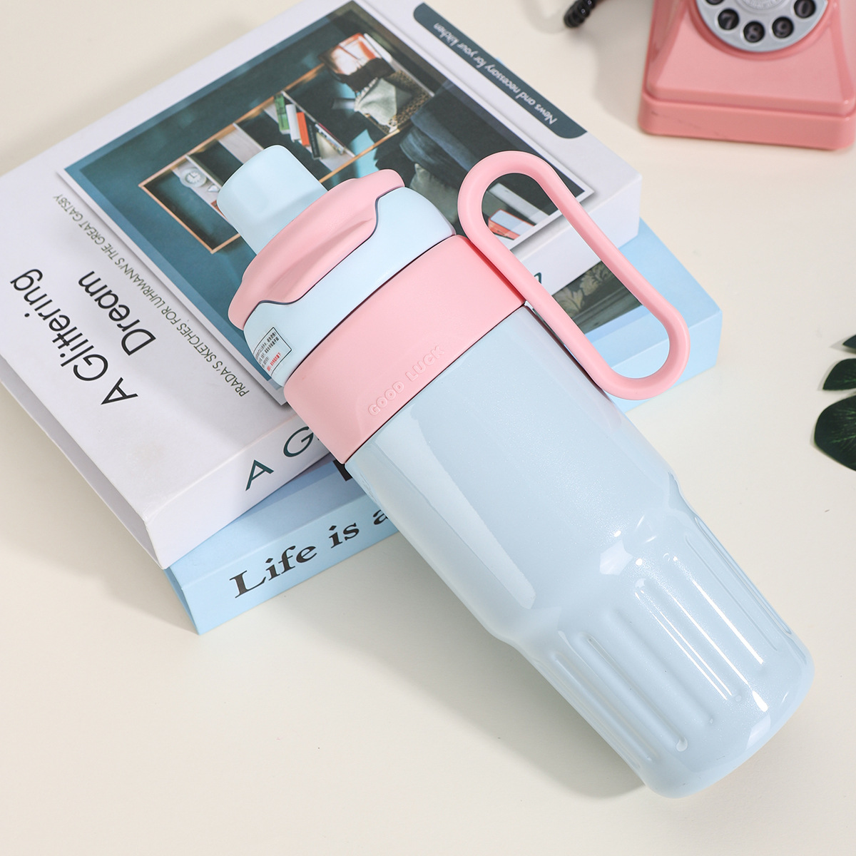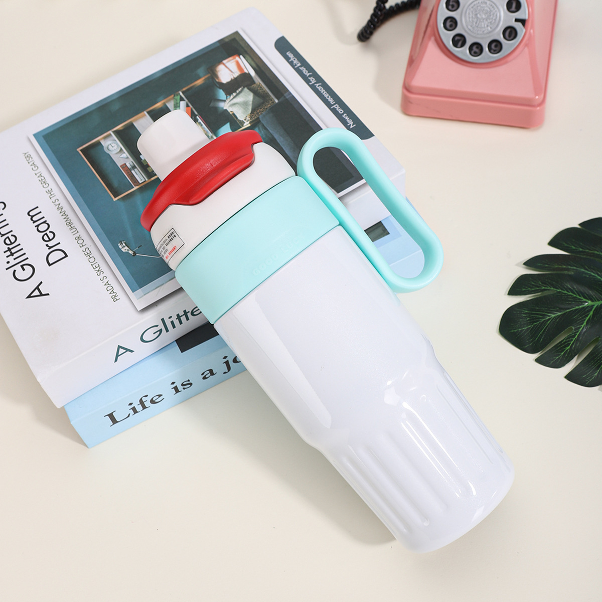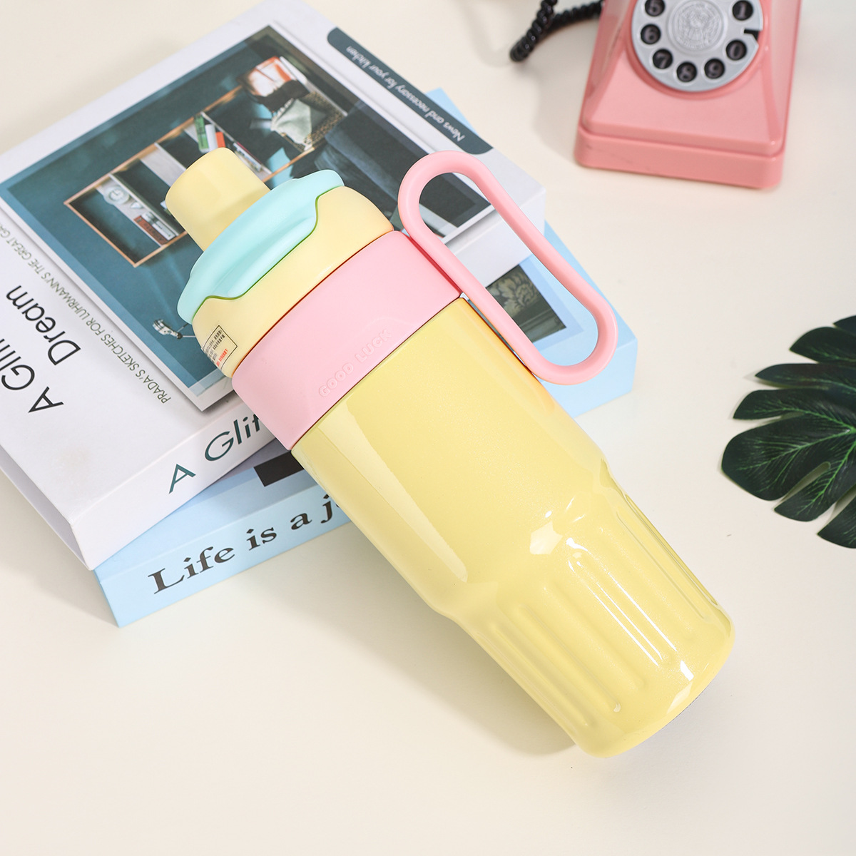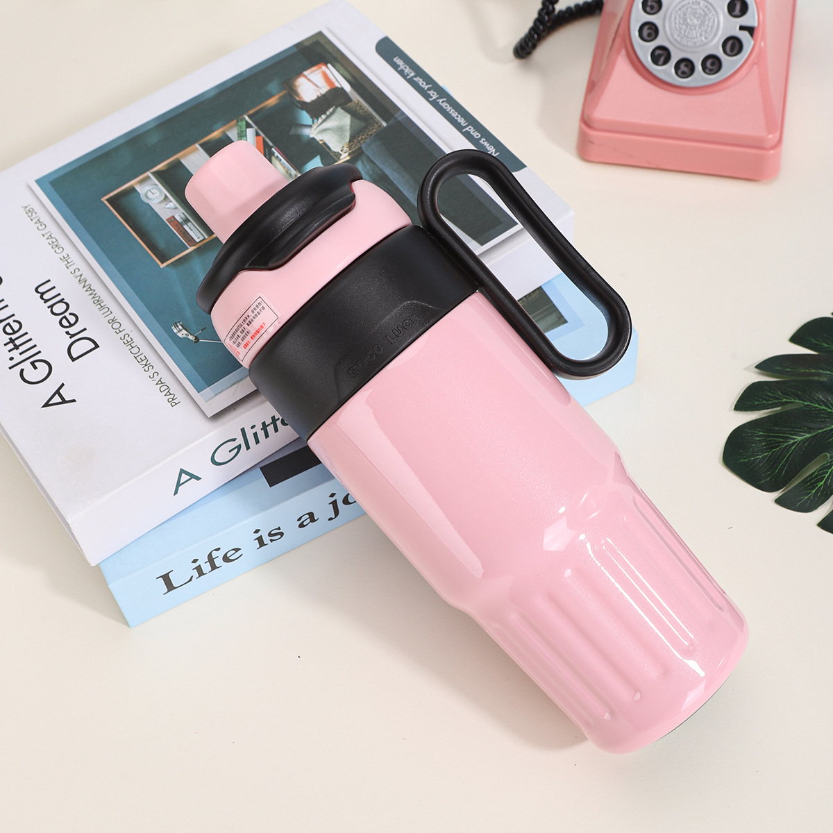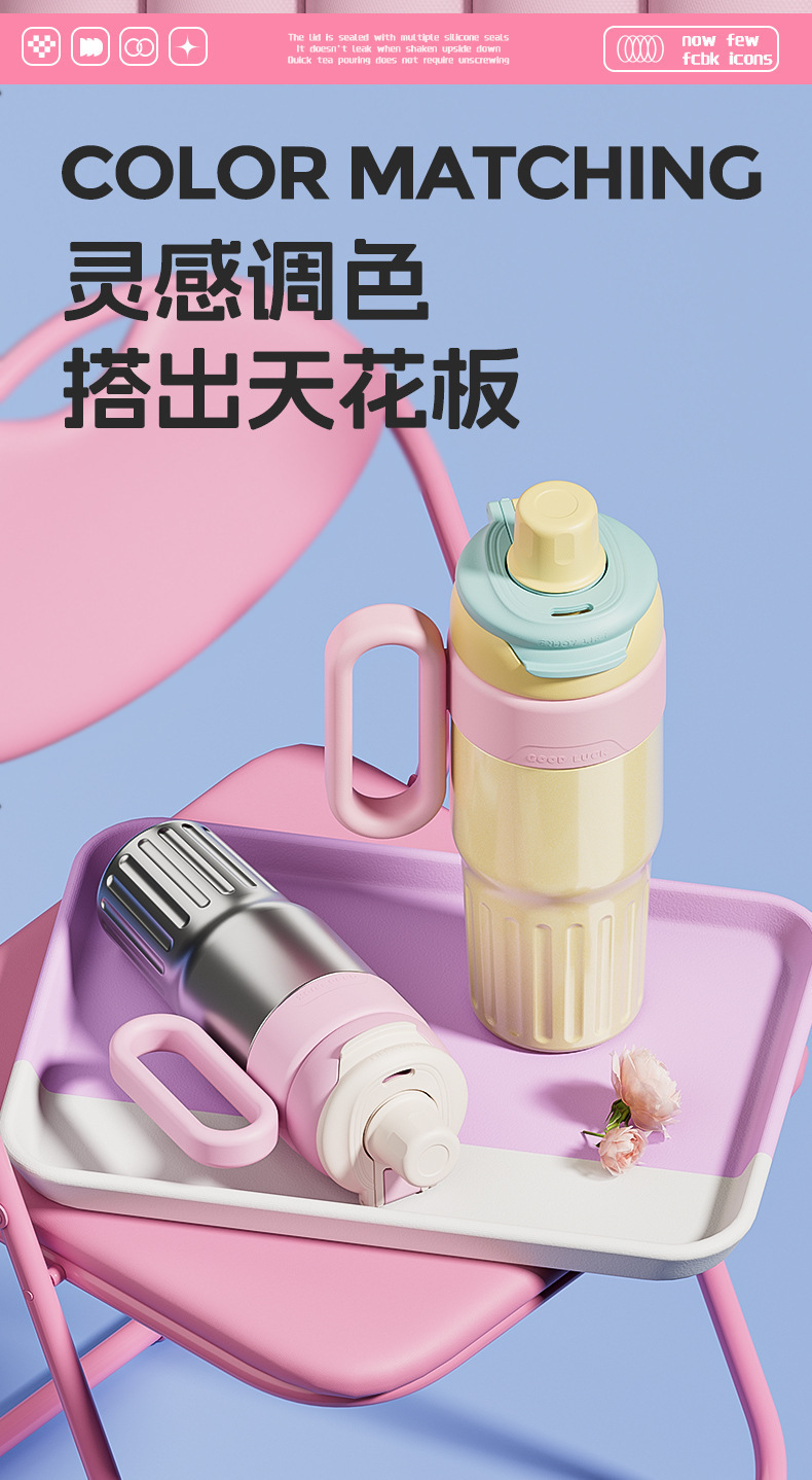 그물 레드 마카롱 컬러 보온병 여성용 높은 컬러 값 휴대용 더블 드루킹 컵 핸들 스테인레스 스틸 자동차 아이스 컵