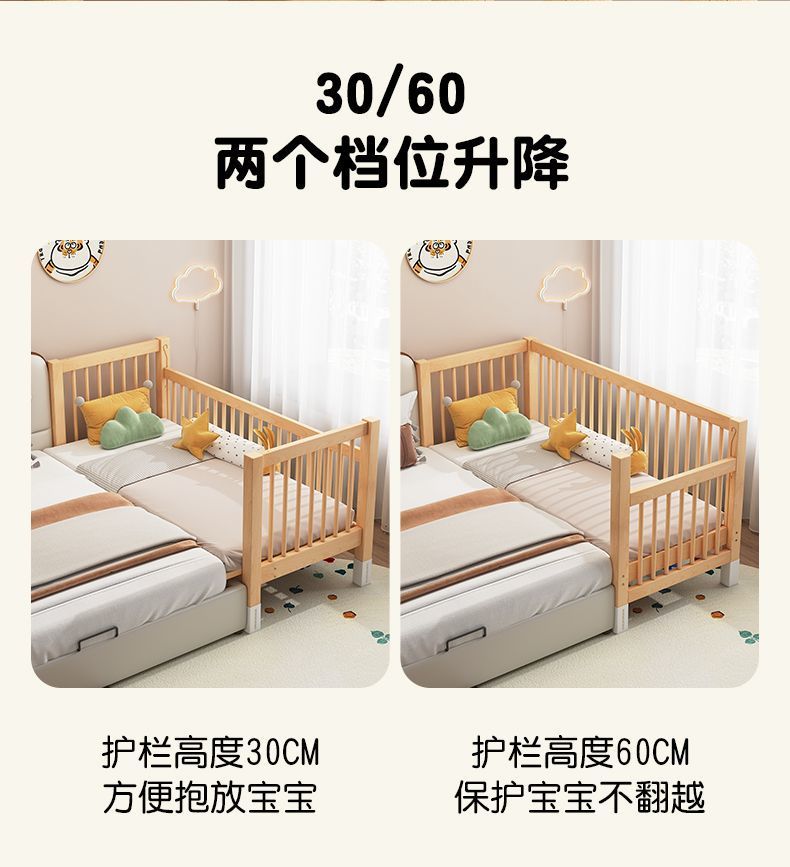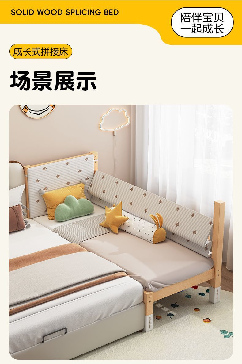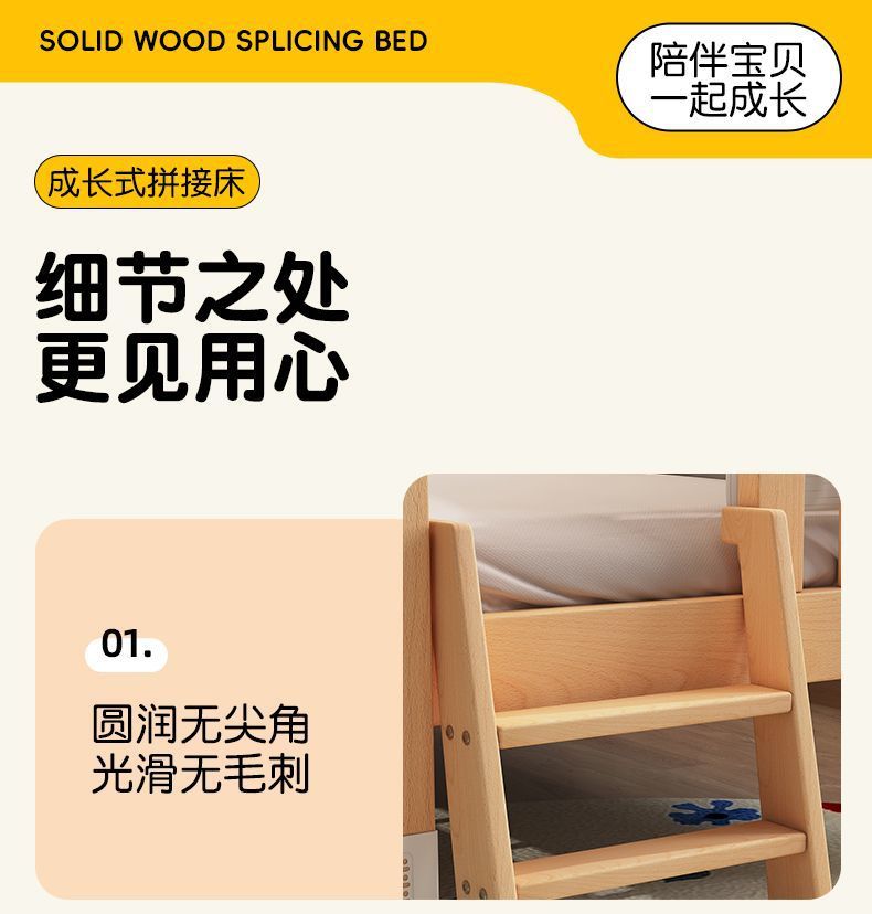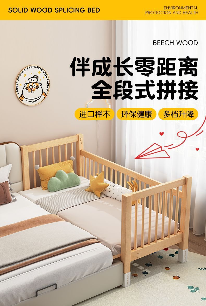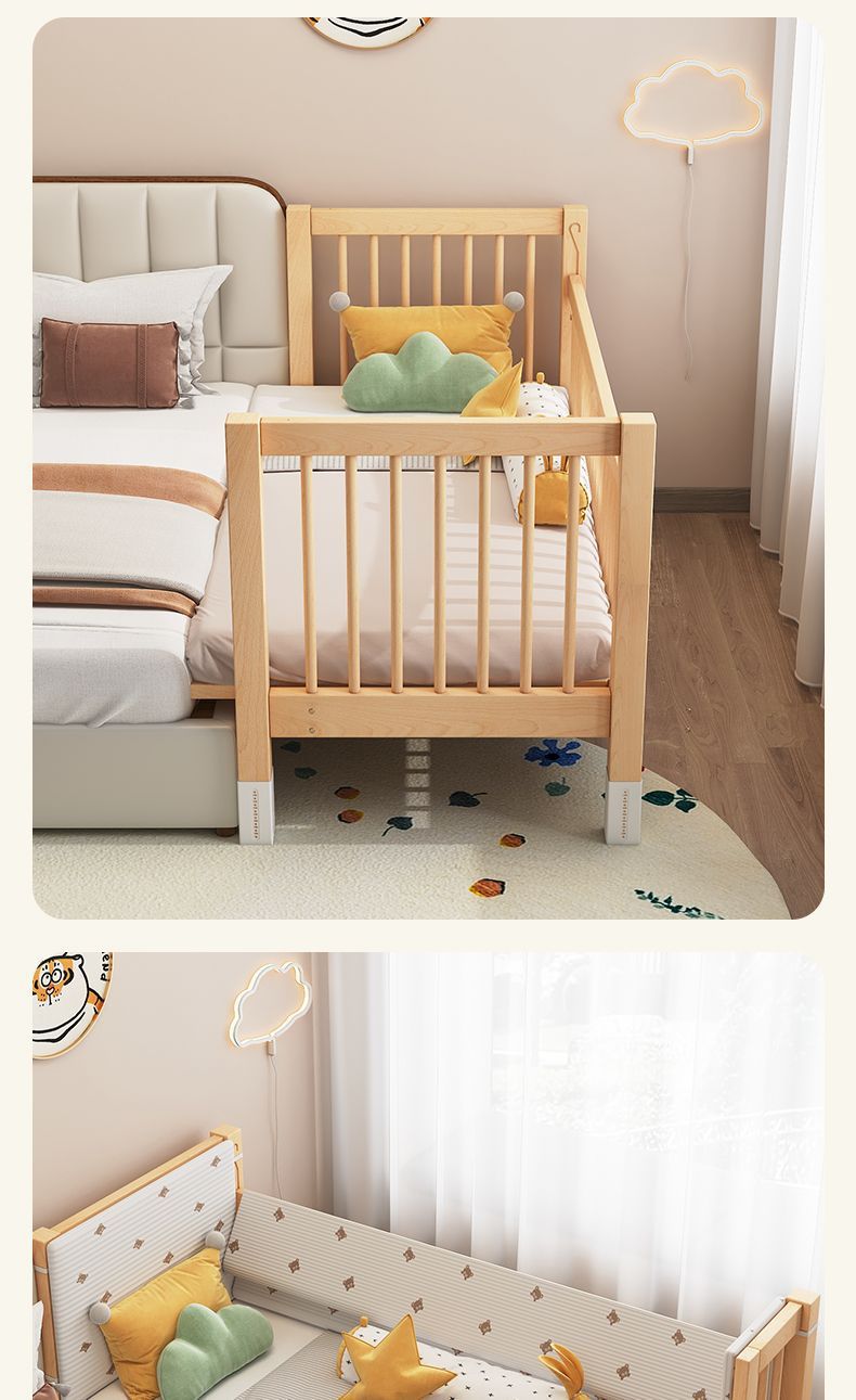 높이 조절이 가능한 어린이 침대, 가드레일이 있는 대형 침대, 아기 침대 옆 확장 싱글 침대 리프팅 너도밤나무 어린이 침대
