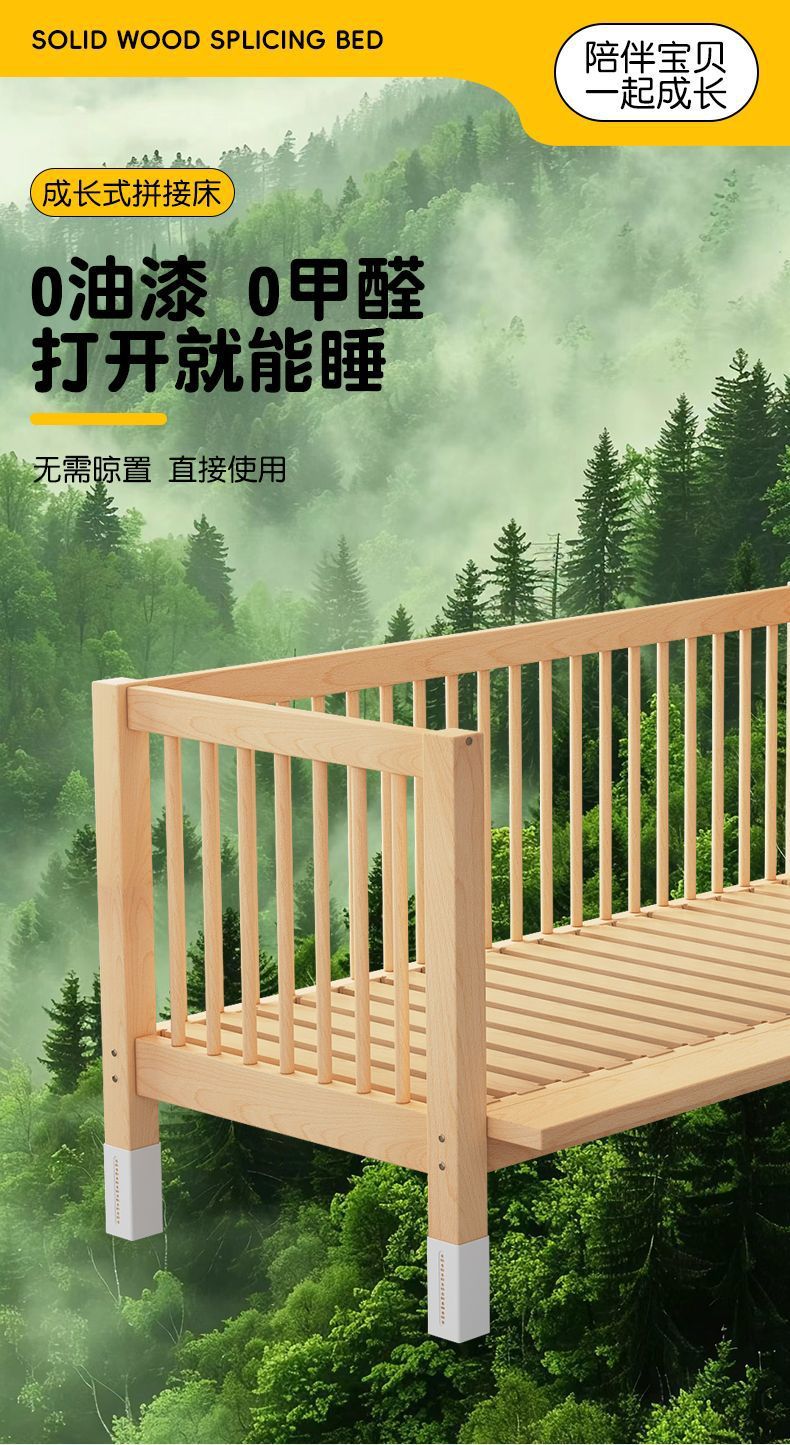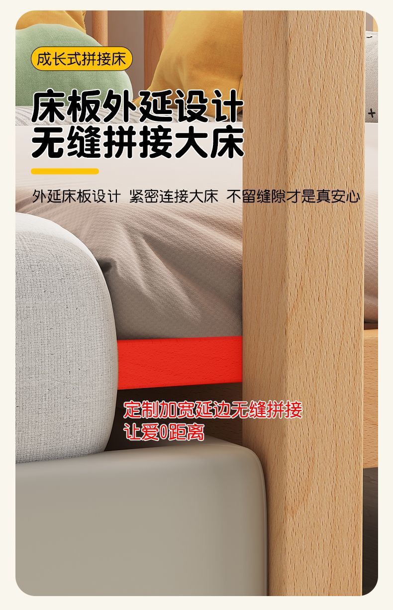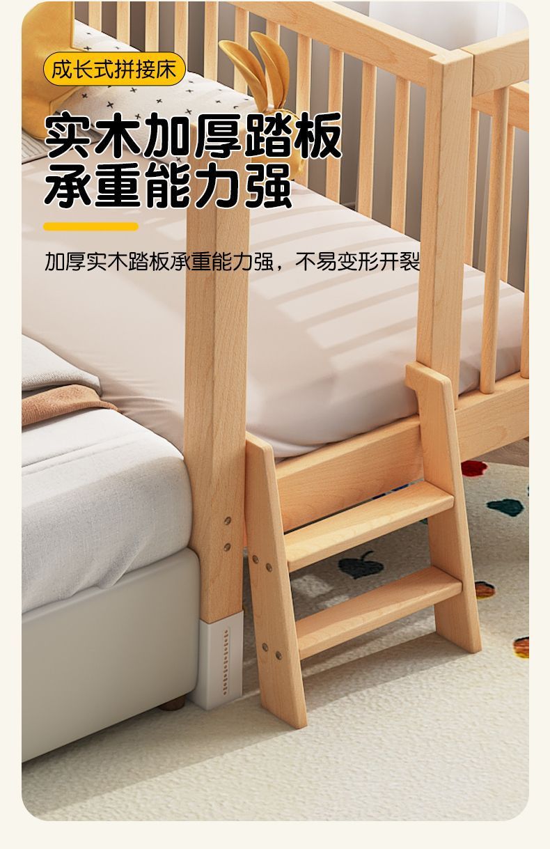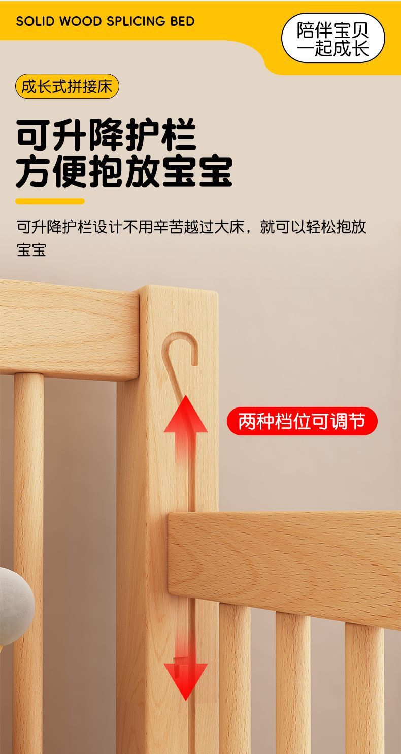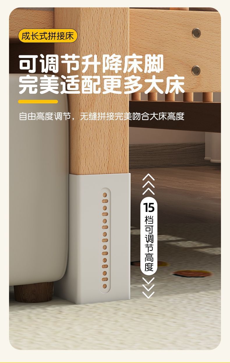높이 조절이 가능한 어린이 침대, 가드레일이 있는 대형 침대, 아기 침대 옆 확장 싱글 침대 리프팅 너도밤나무 어린이 침대