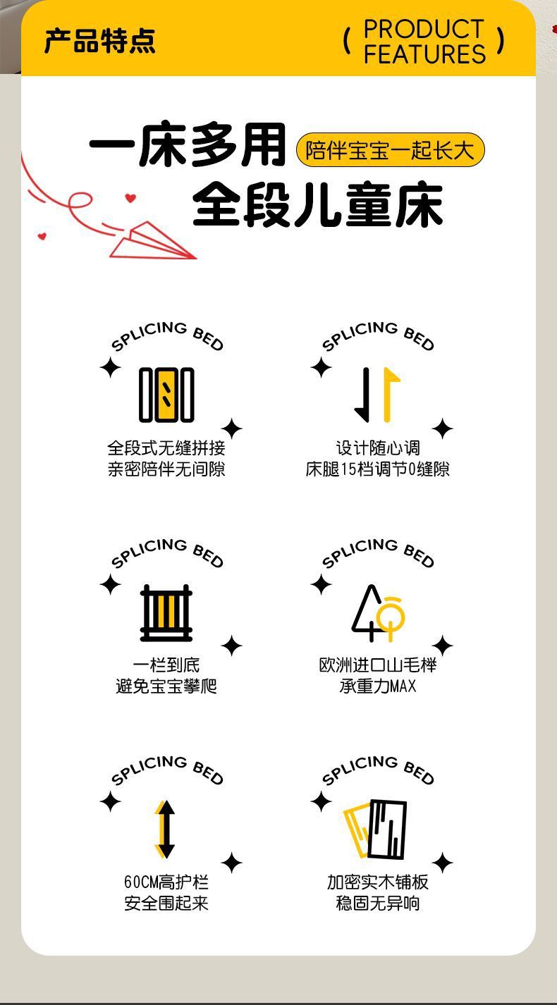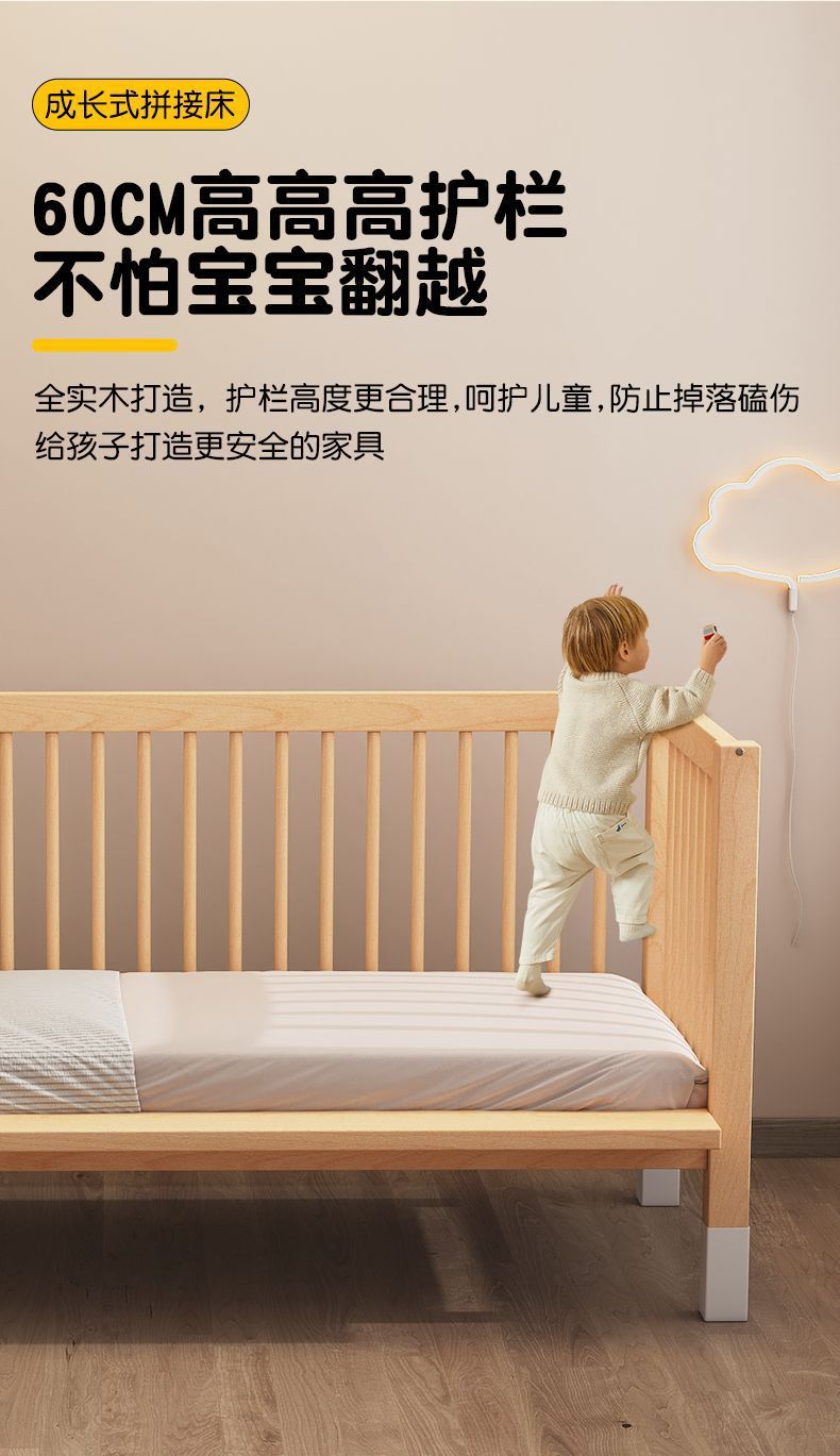 • 200*60 양면 가드레일 + 매트리스 + 침대 옆 너도밤나무 색상