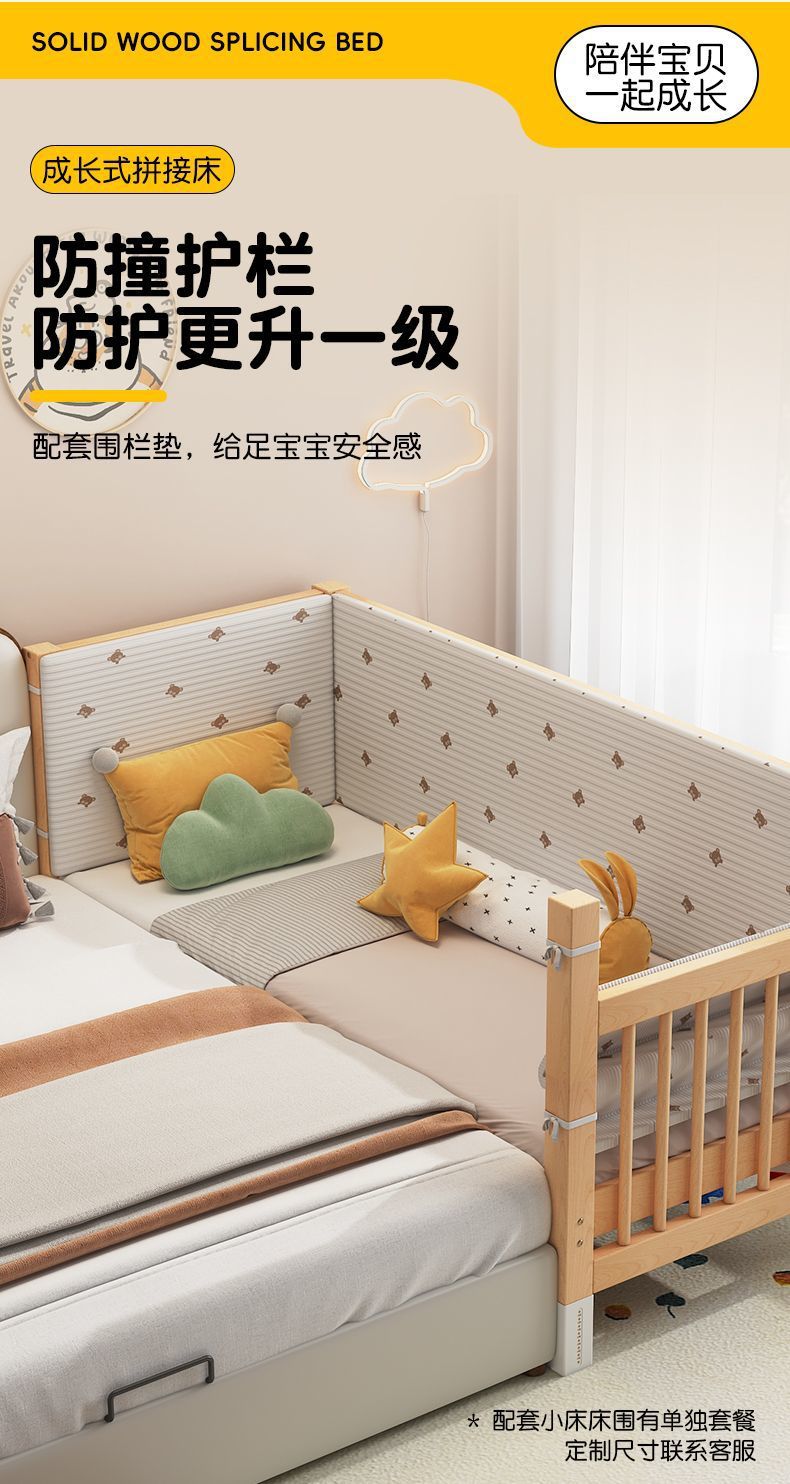 • 150*60; 3면 가드레일 + 매트리스 + 침대 서라운드, 너도밤나무 색상