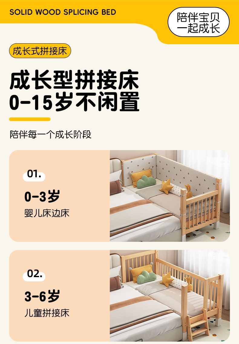 • 150*80 양면 가드레일 + 매트리스 + 침대 옆 너도밤나무 색상