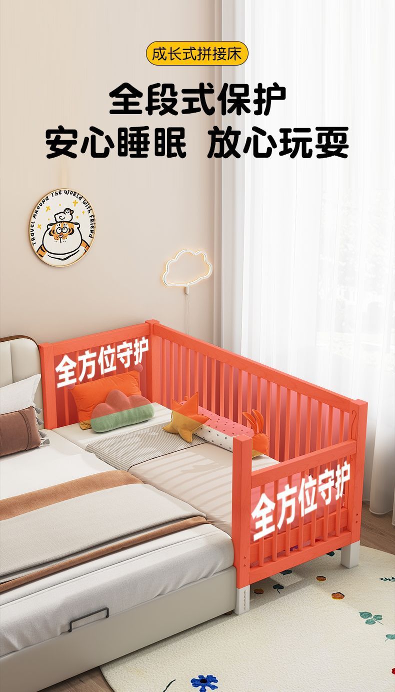 • 180*80; 3면 가드레일 + 매트리스 + 침대 서라운드, 너도밤나무 색상