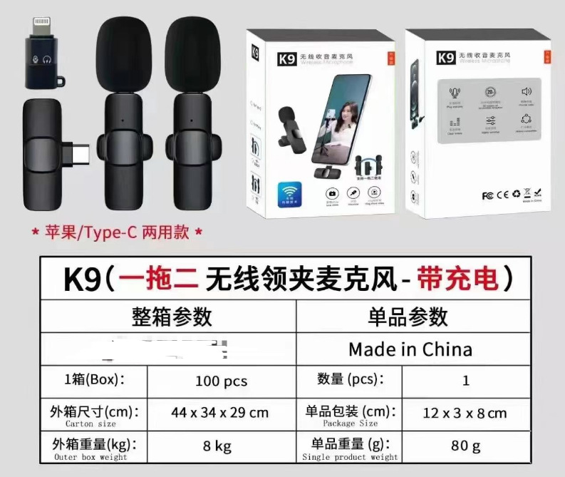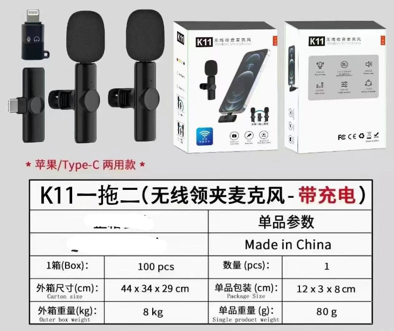 K8K9 휴대 전화 라이브 방송 소음 감소 마이크 2.4G 무선 라발리에 K11 마이크 리버브 라이브 방송 녹음 모니터링스토어 가기