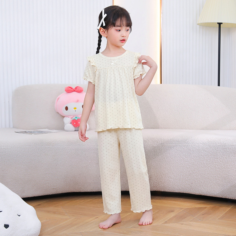 소녀 반팔 잠옷 홈 의류 세트 봄과 여름 얇은 어린이 에어컨 옷 작은 소녀의 공주 스타일 세트