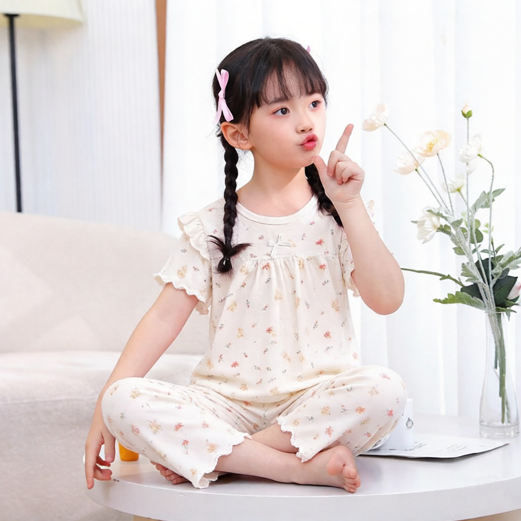 소녀 반팔 잠옷 홈 의류 세트 봄과 여름 얇은 어린이 에어컨 옷 작은 소녀의 공주 스타일 세트스토어 가기