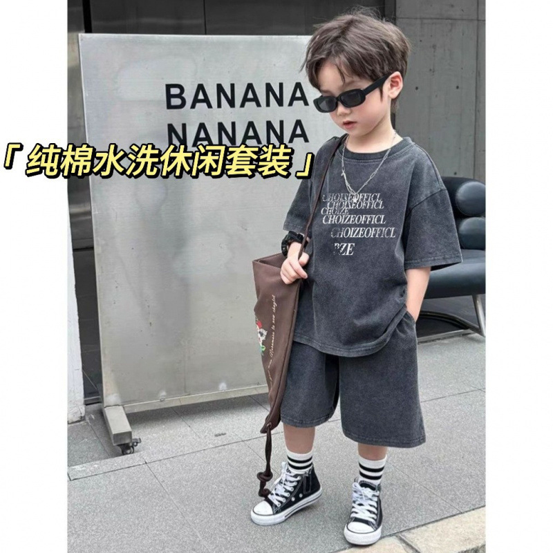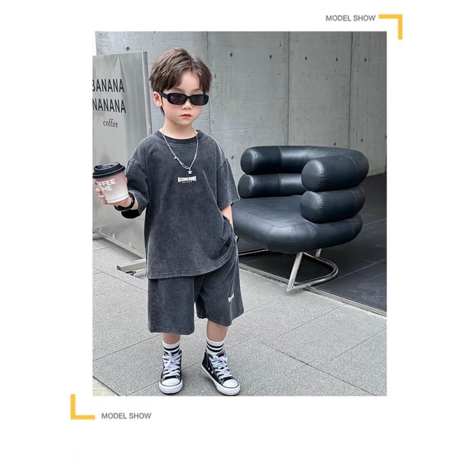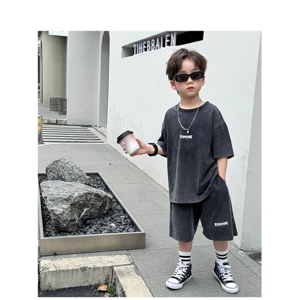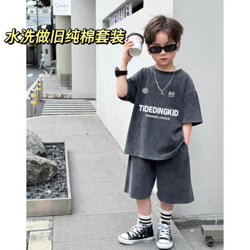 남학생 코튼 세트 씻은 오래된 반팔 반바지 여름 패션 브랜드 유행 의상 시원하고 잘 생긴 스포츠 투피스 세트스토어 가기