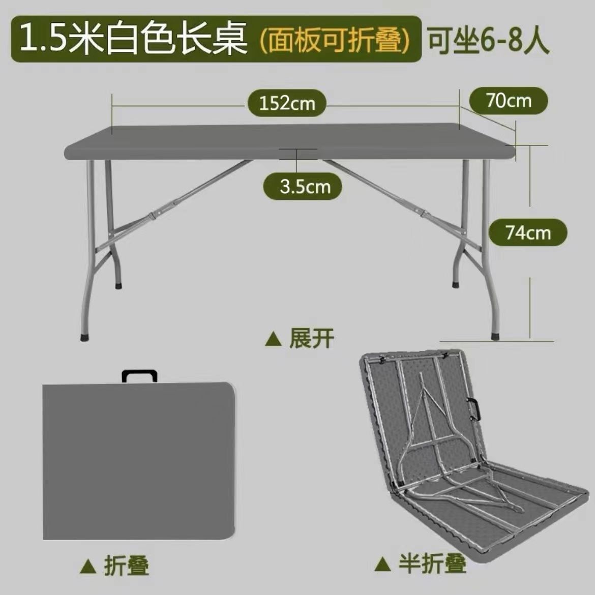 • 1.5m 양쪽 다리 접이식, 6~8인용, 회색