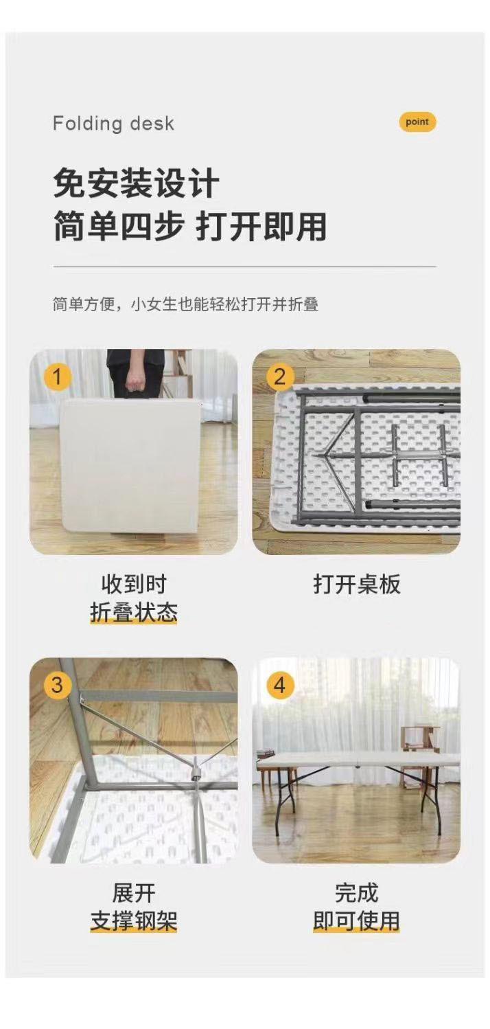 • 2.4m 양쪽 다리 접이식, 10-12인용, 흰색